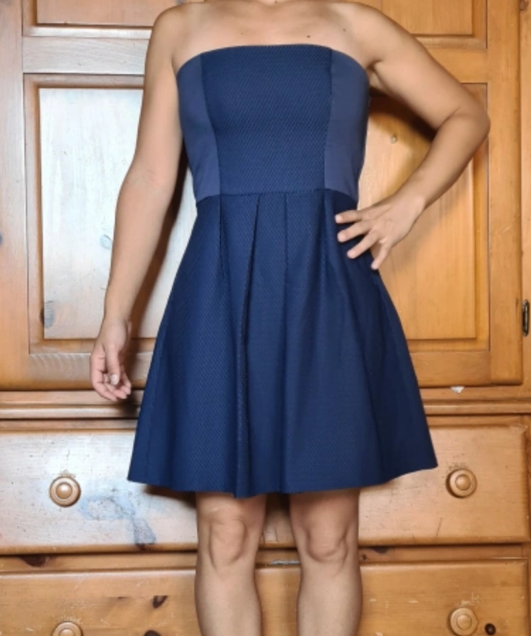 Blue strapless dress from the French brand NAFNAF. Double layers for the skirt.