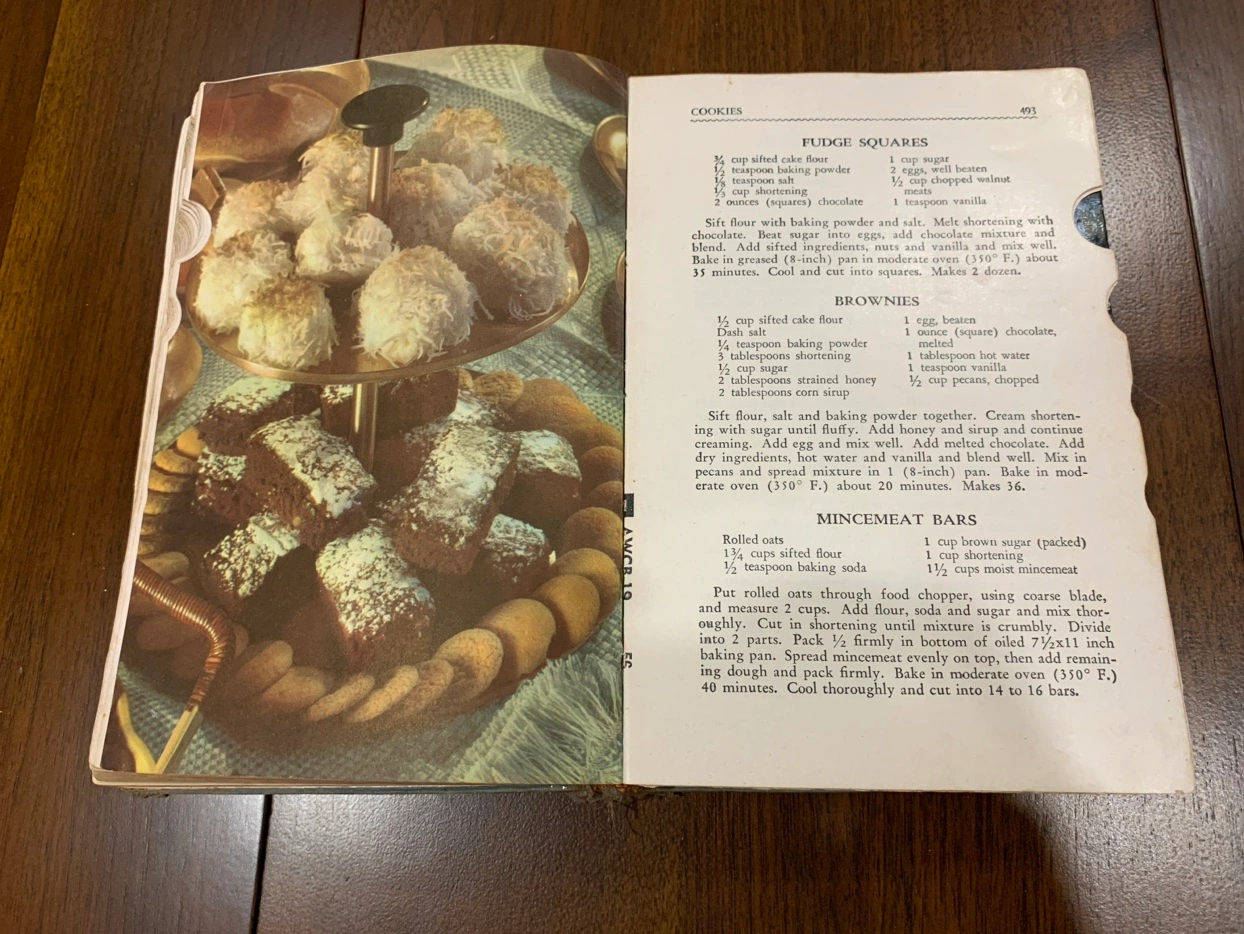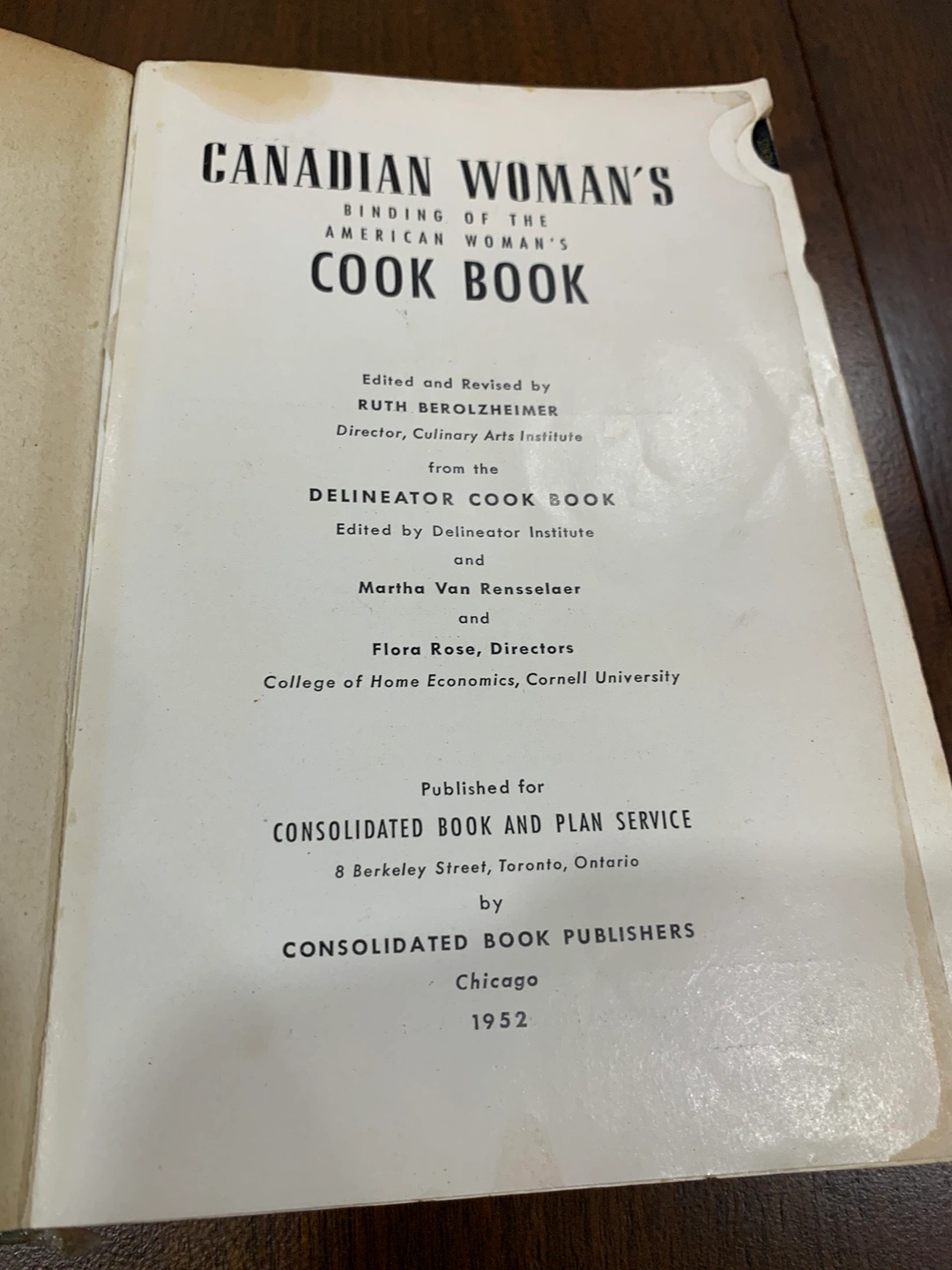 This vintage cook book has been well used and cherished so the binding is not in the best of conditions however the pages are for the most part in very good condition. Lots of how to’s included in this book, it was great for the beginner cook.