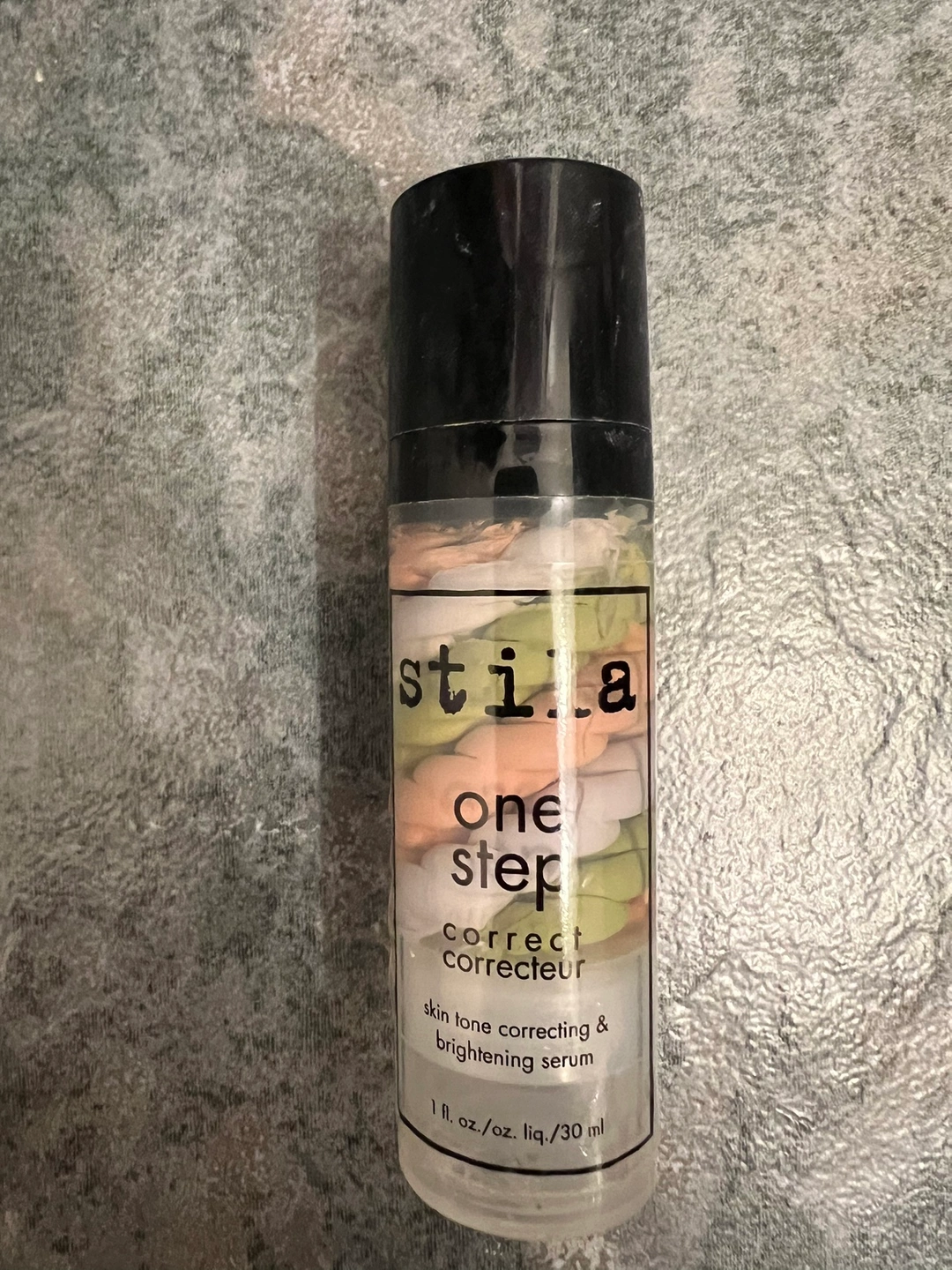 This is a Stila One Step Correct serum that is almost full, used once only, I have very dry skin so this was not suitable, suitable for acne and oily skin, correct redness and pigmentation . It is a skin tone correcting and brightening serum.