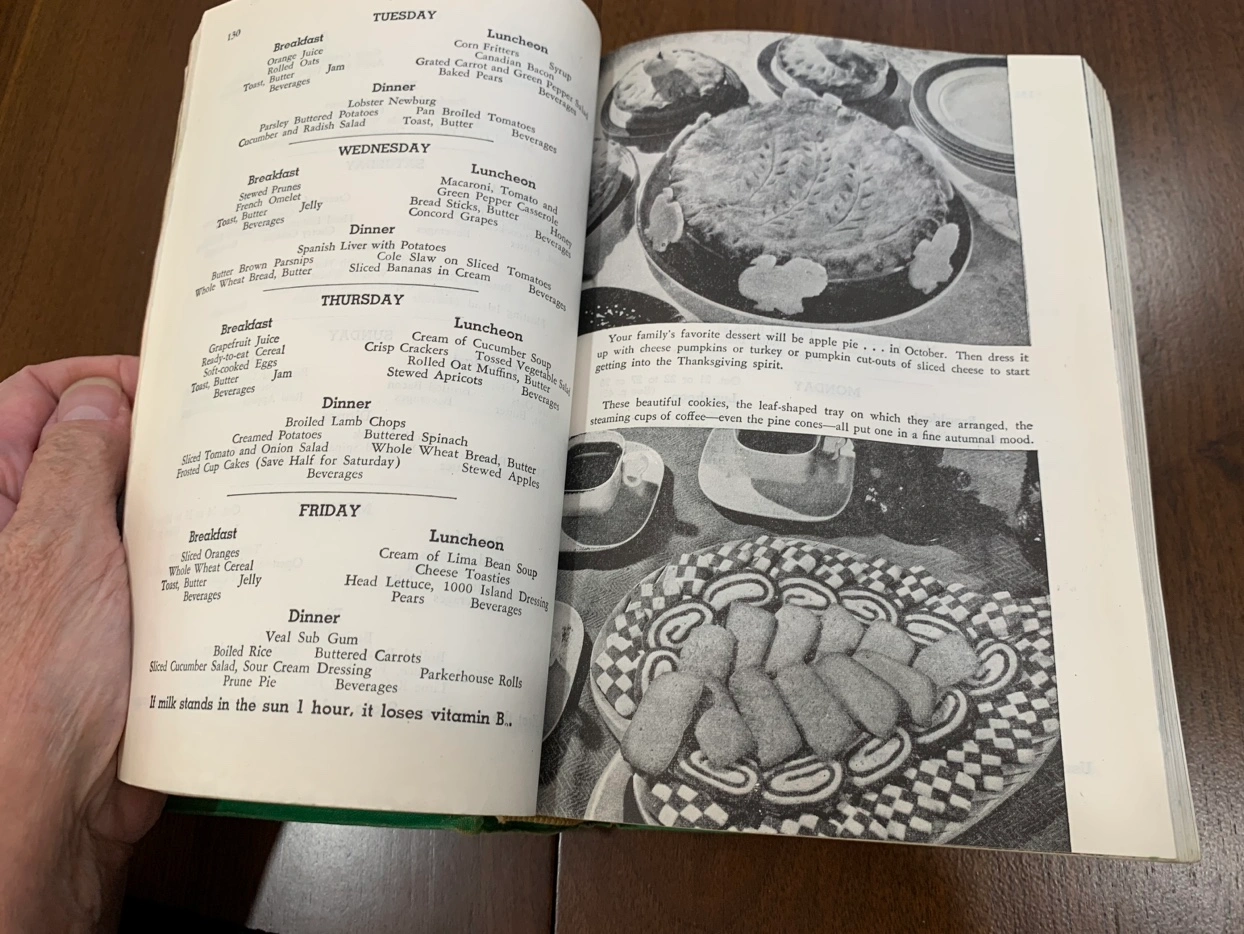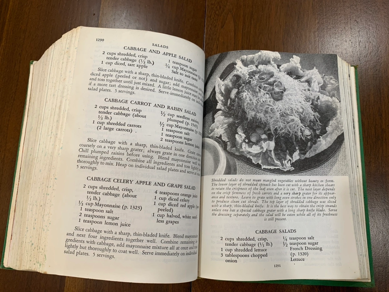 better and richer life. A very pretty book for your collection! Book contains a small color photo section, with mostly black and white illustrations throughout and a Green Cloth Hardcover with green speckled edges. Wonderful addition to your vintage cookbook collection, bring a little bit of grandmas recipe into your home!