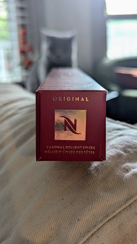 A box of Nespresso Original Seasonal Delight Spices coffee pods. never enjoyed the flavor and giving away for free. pods work for Lattissima machine ( Nespresso original machine ).