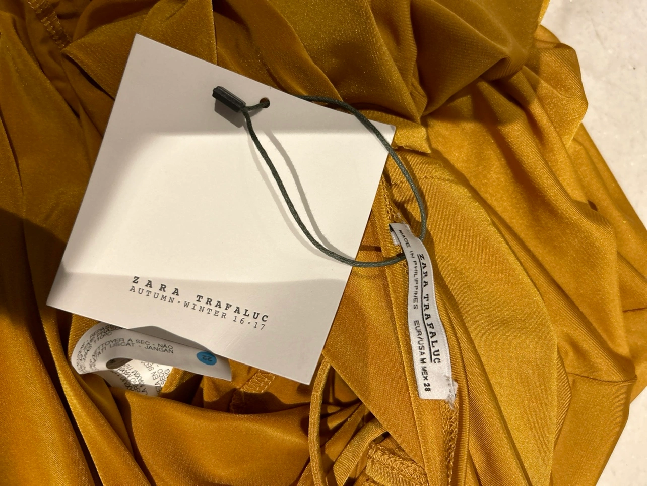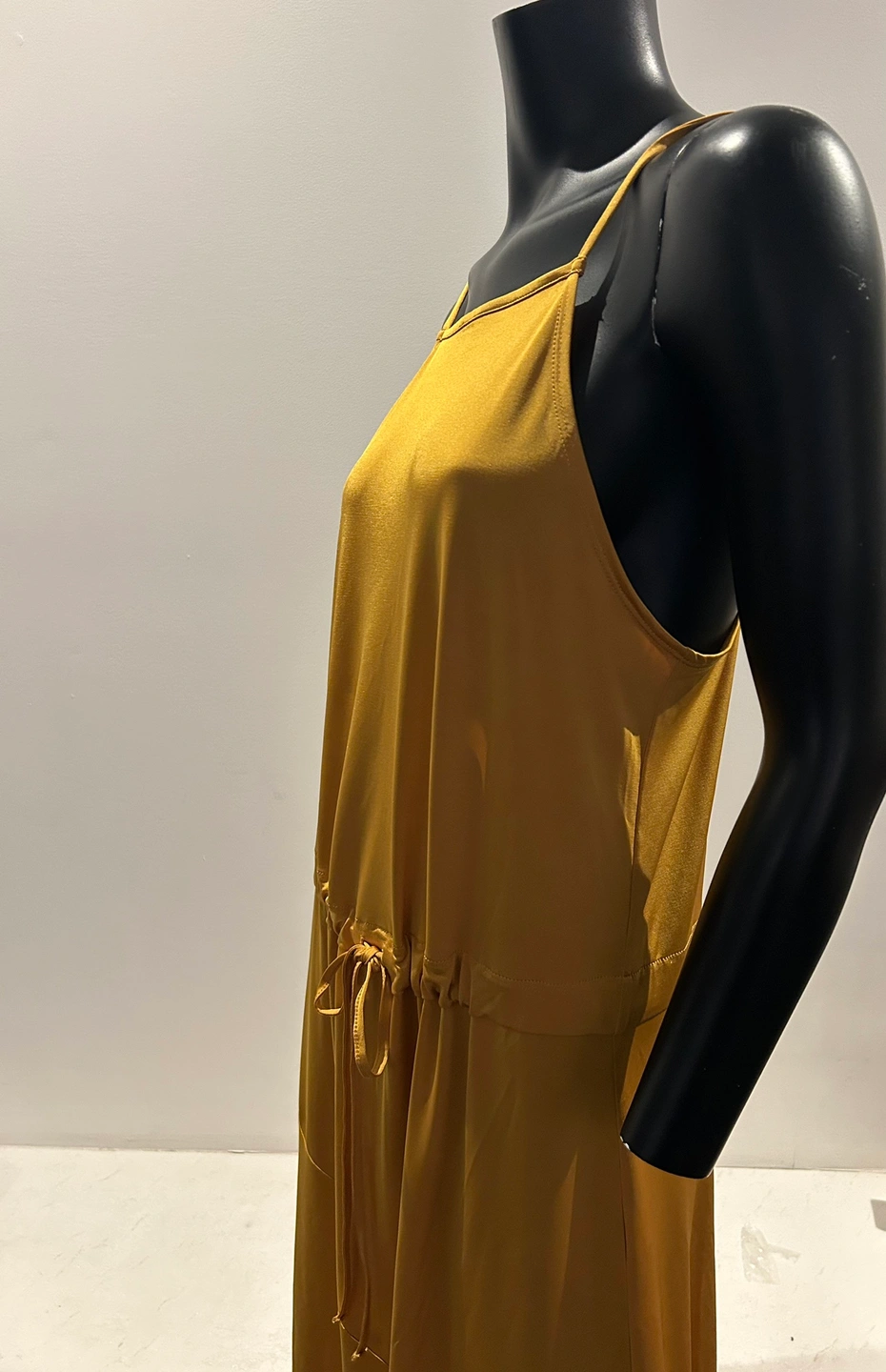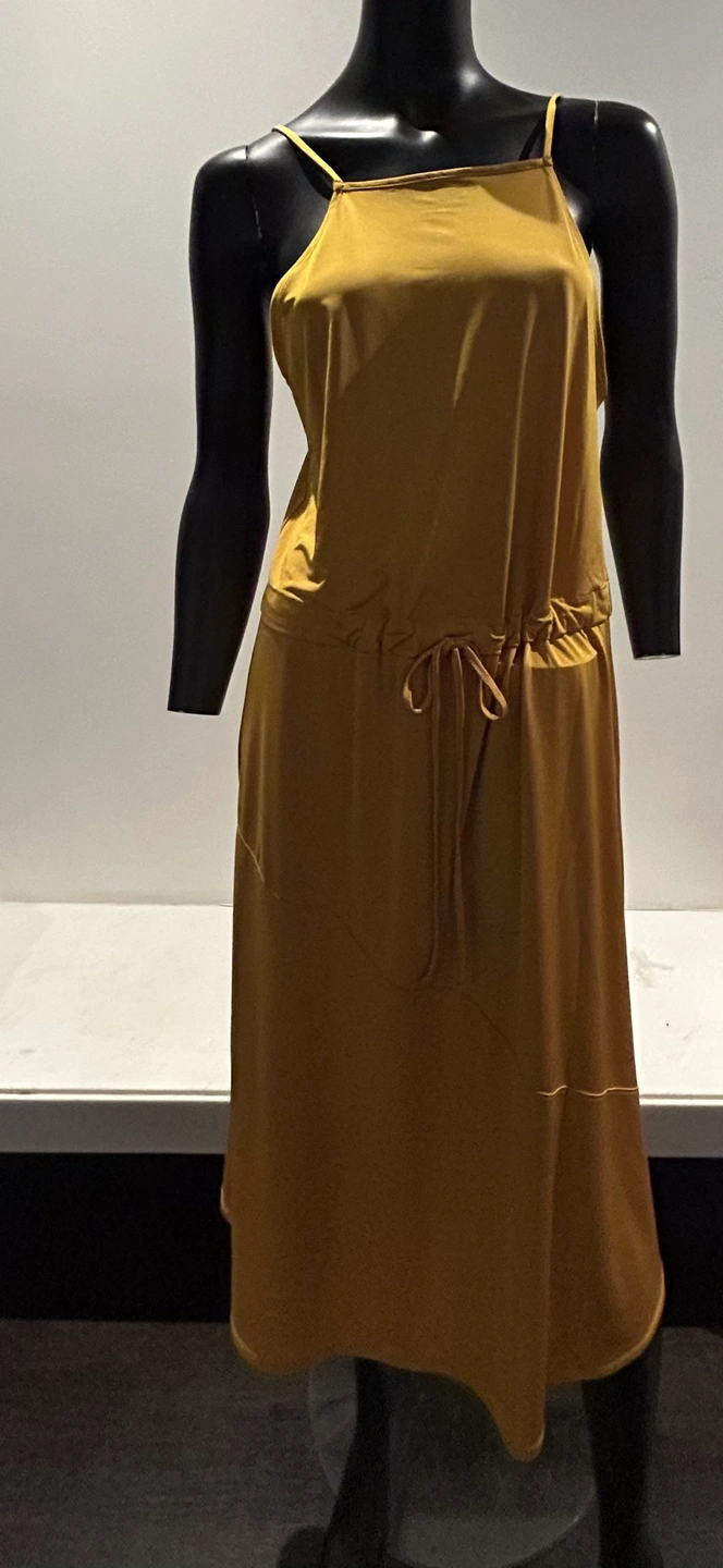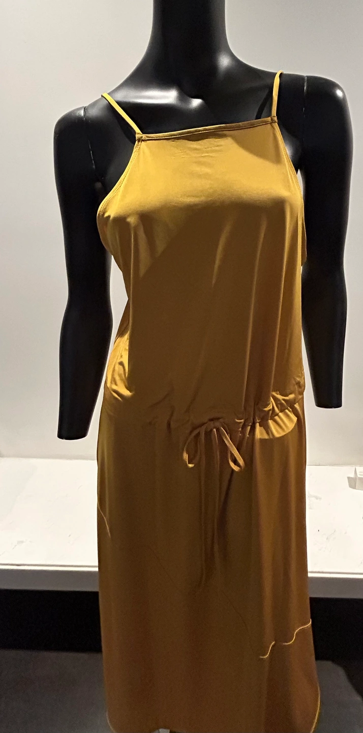 A beautiful mustard yellow maxi dress with a tie waist. The dress has a square neckline and thin straps. It is a loose-fitting, flowy style. New with tags Zara silky burnt yellow dress. So pretty and flattering. Medium. Tie at waist if you want to wear it cinched. Can also leave it loose. Good as summer dress or layering. Even over turtle neck and black or brown boots in winter. So comfortable and flattering cut.