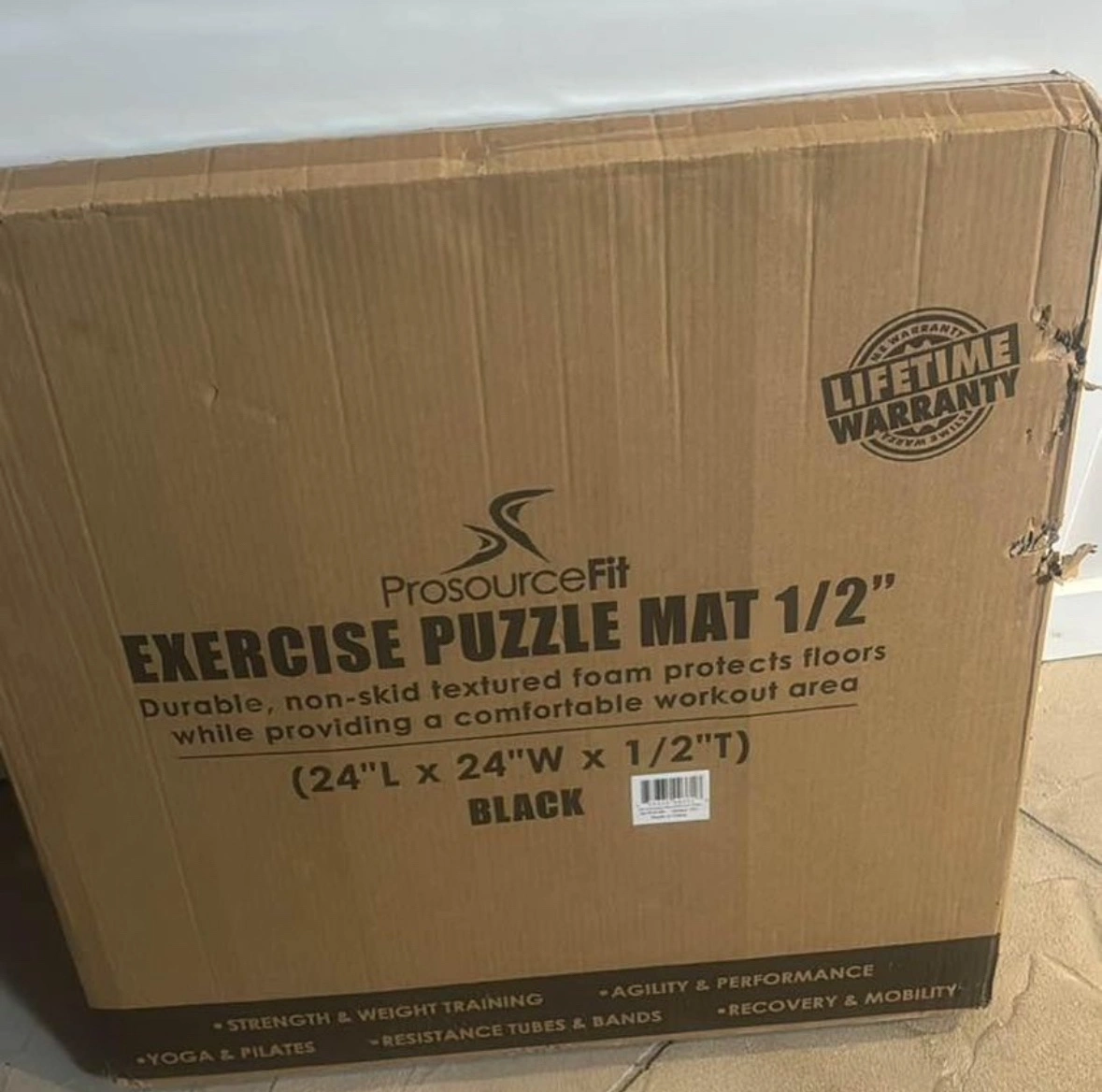 60Durable, non-skid textured foam protects floors while providing a comfortable workout area. (24"L x 24"W x 1/2"T). Black.