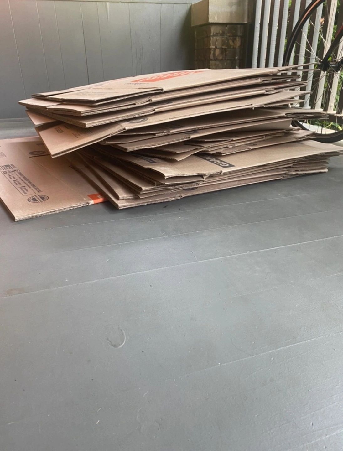 Approx 25 cardboard Home Depot moving boxes. Ranging in mostly larger to medium and a handful of small. Comes with additional packing paper. Free. Just come pick it up and it’s yours.