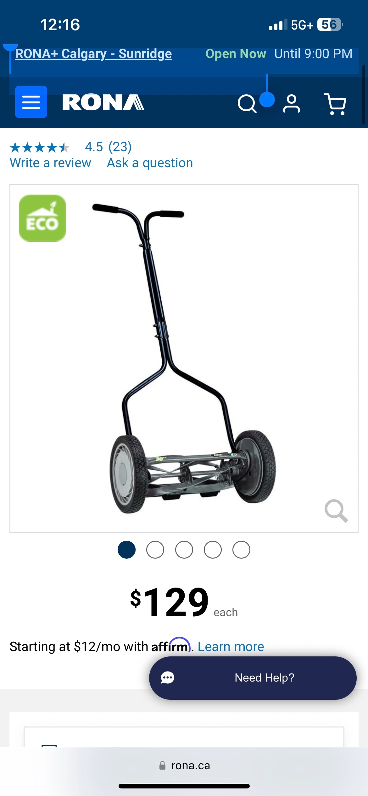 With a cutting width of 35.5 cm (14-in), this lawn mower comes with 5 heat-treated rotary blades that stay sharp longer and has an easily adjustable cutting height of 2.5 cm to 5.7 cm. It's also equipped with ball bearing reels, allowing exceptional manoeuvrability on any type of terrain. This device cuts grass with a scissors-like action, which avoids damaging the grass and its roots while maintaining a mineral-rich soil.