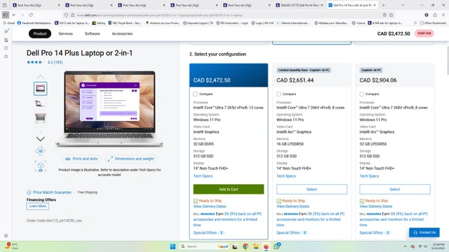 10Brand New Sealed – Dell Pro 14 Plus PB14250 Retail 2470$+tax (2791$ after tax) ( BIG DIFFERENCE BETWEEN DELL PRO 14 PLUS and DELL 14 PLUS , please do consider that when messaging, with PRO being High end luxury line, and Non-pro, being entry business level) Key Features: Model: Dell Pro 14 Plus PB14250 Ultra 7 first generation 32GB DDR5 RAM – 512GB SSD – quick boot + plenty of storage up to 2tb WWAN Ready – stay connected anywhere Brand New Factory Sealed – never opened ✅ Perfect for business, students, creators, and professionals ✅ Ultra-slim, portable, and powerful machine Condition: 100% Brand New – Sealed Box Local Pickup 7171 yonge street