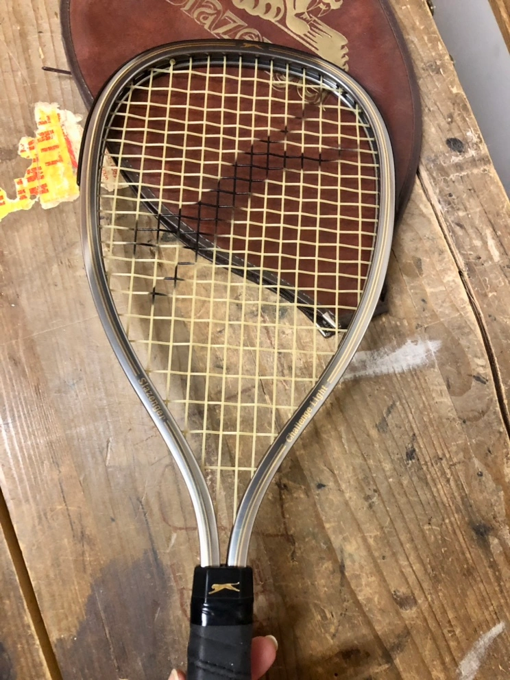 Less people playing racketball. And a premium brand in Slazenger. A great collectable piece.