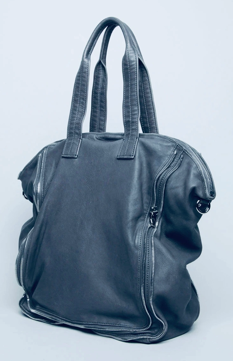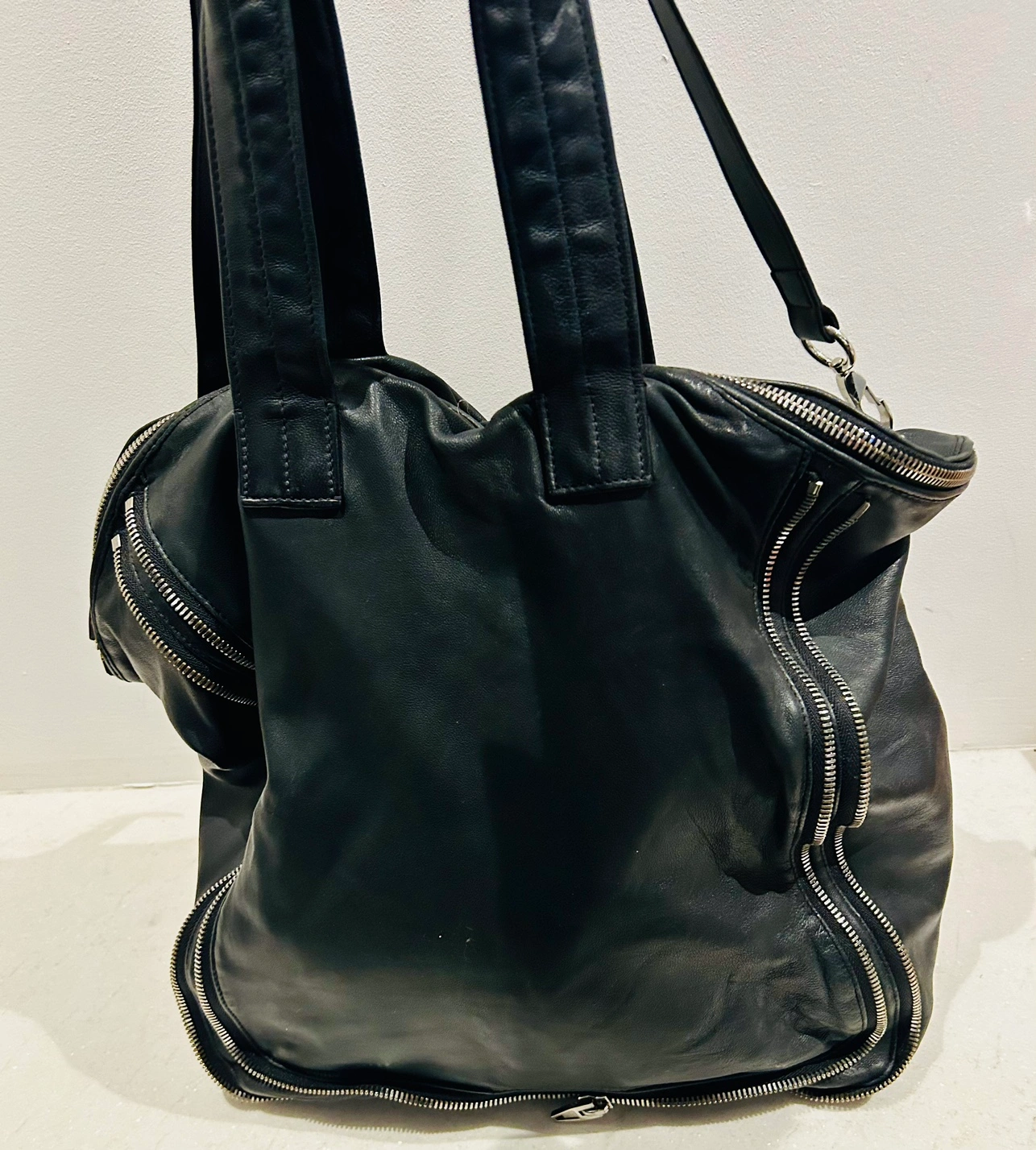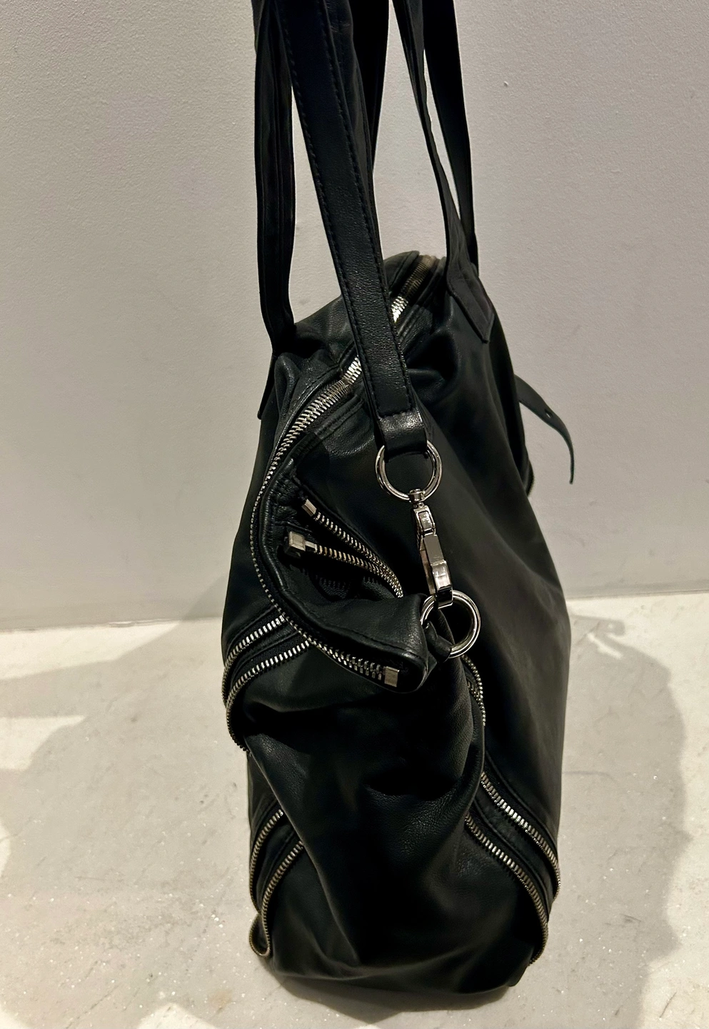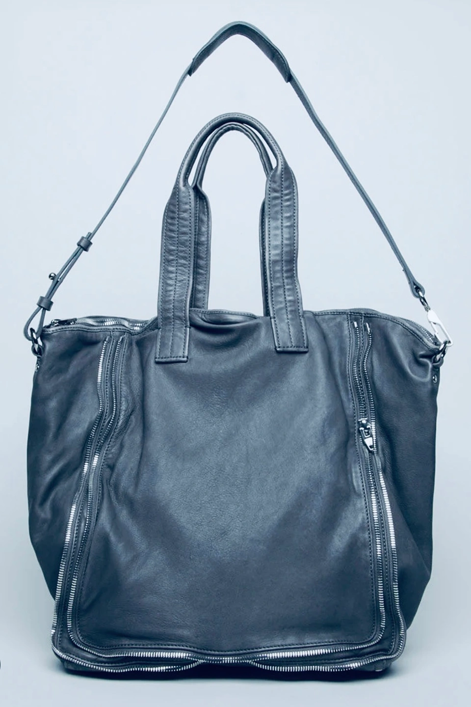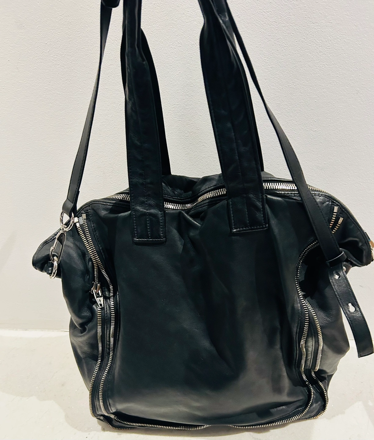 Large leather Alexander wang TRUDY tote bag with a long strap. The bag features mu zipper detail and compartments and a top handle. Also has long handles with detachable strap. This is one of their most beautiful bags. Leather is butter soft. New with tags. Retailed for approx $900.