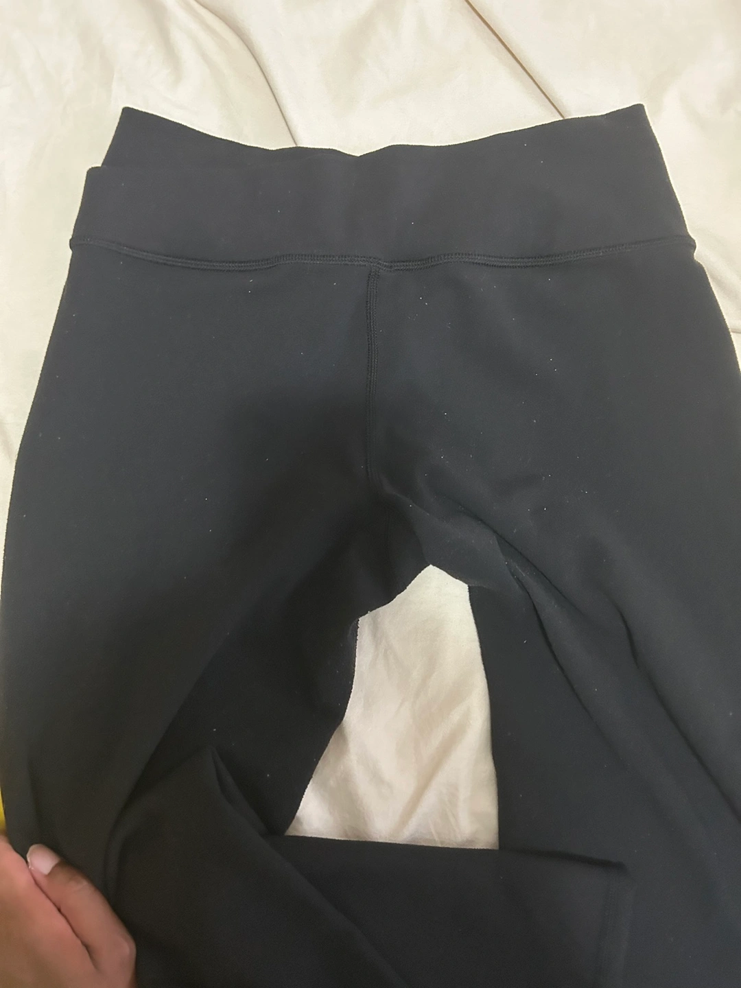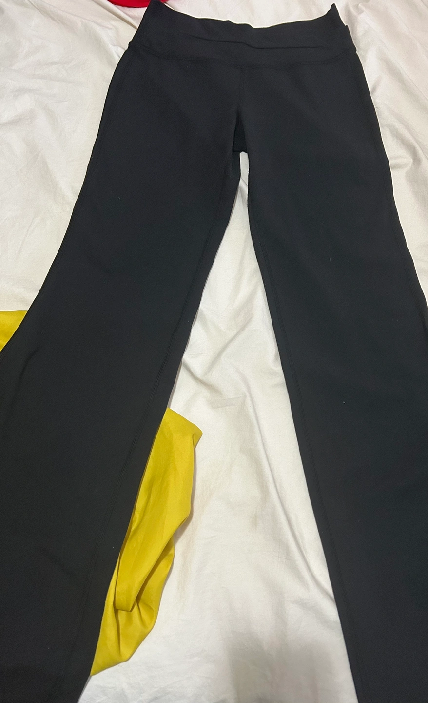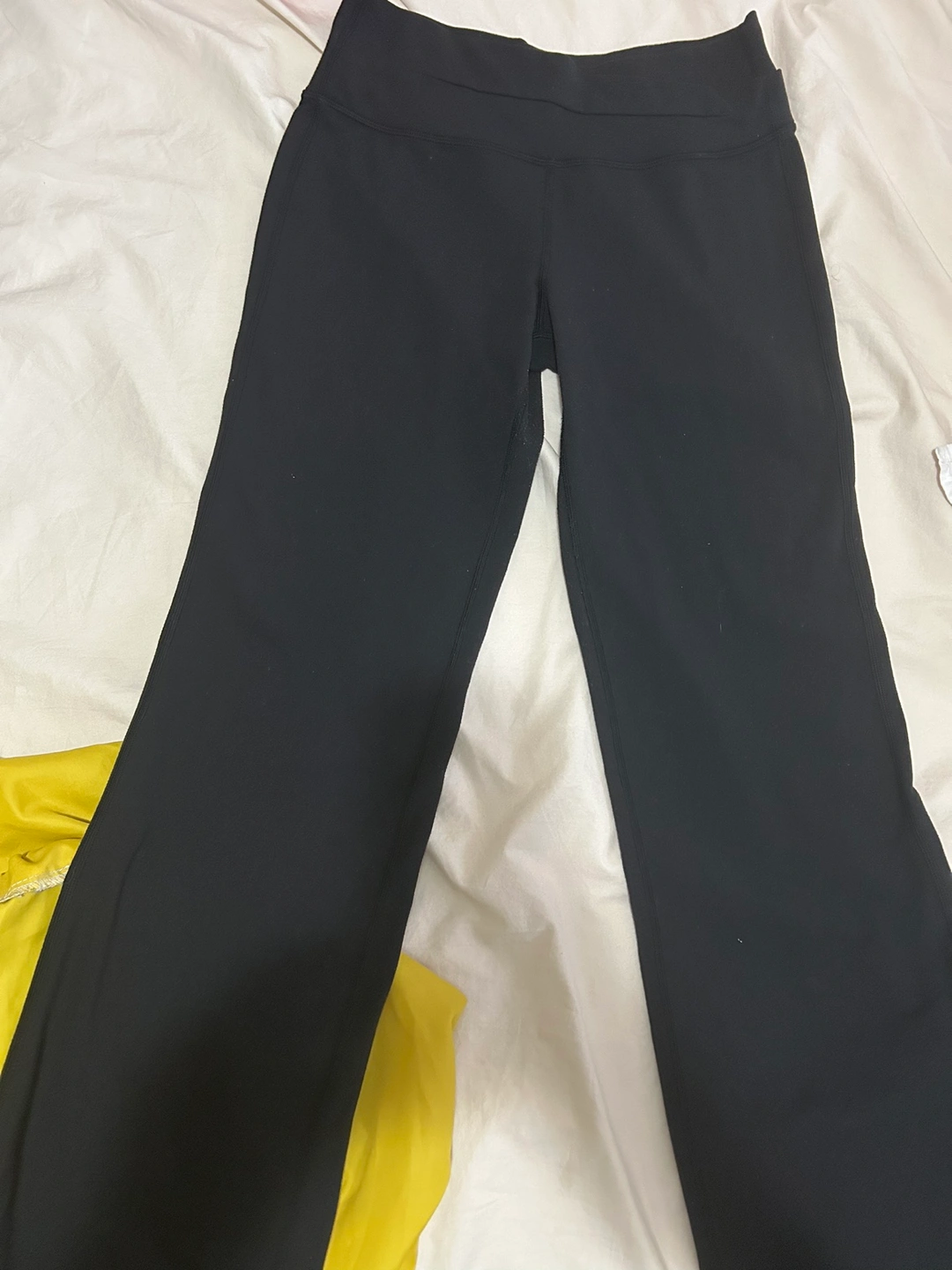 Black Lululemon pants with flare. Size 6. Great for working out or everyday wear. Dress up or down :) no rips or stains. Minor piling - easy fix