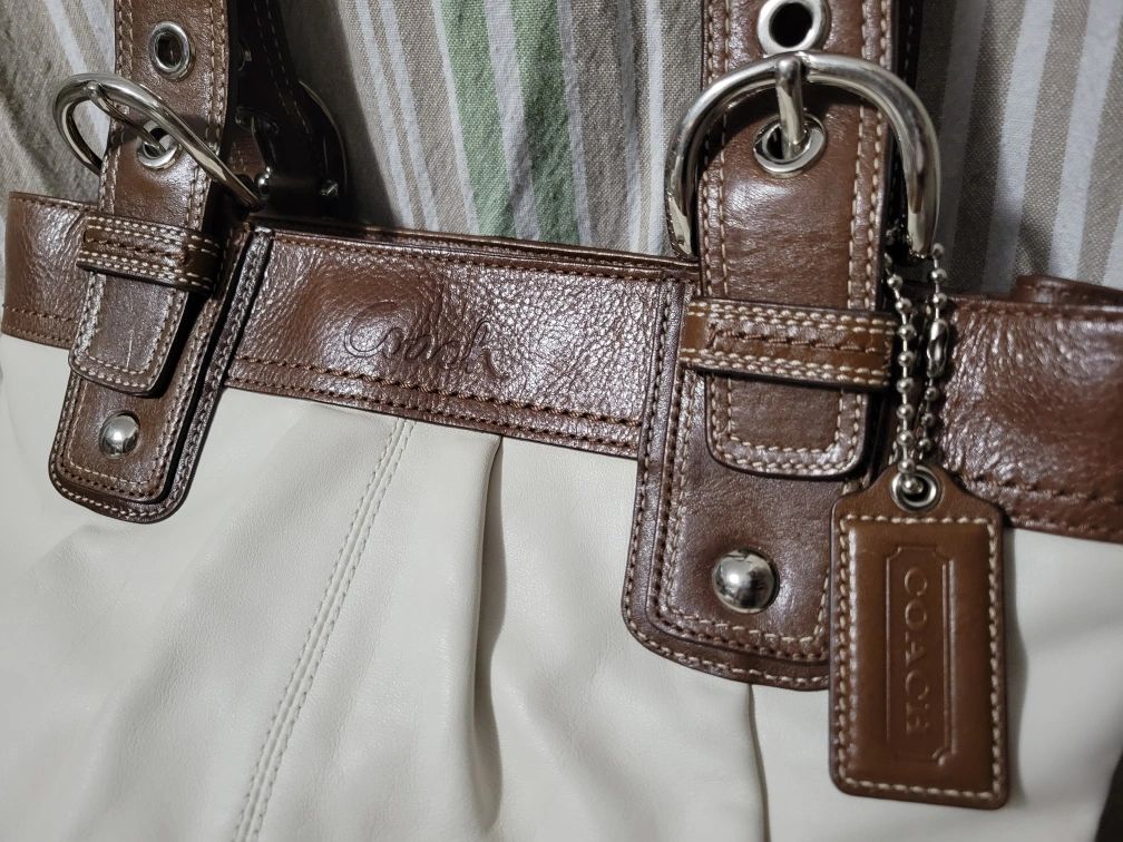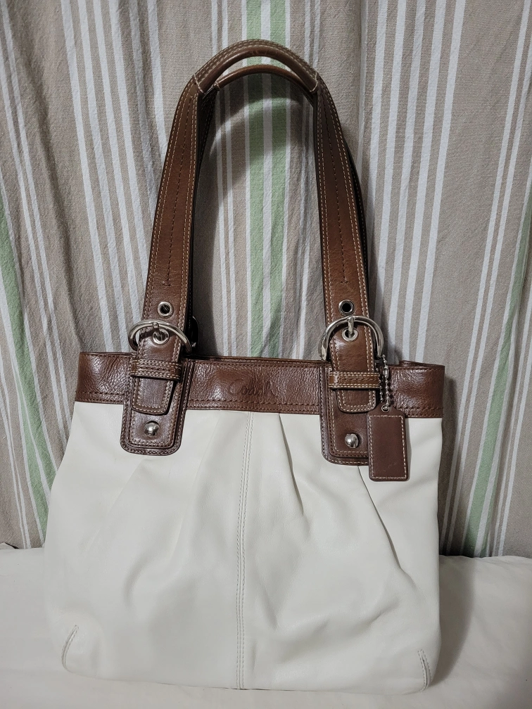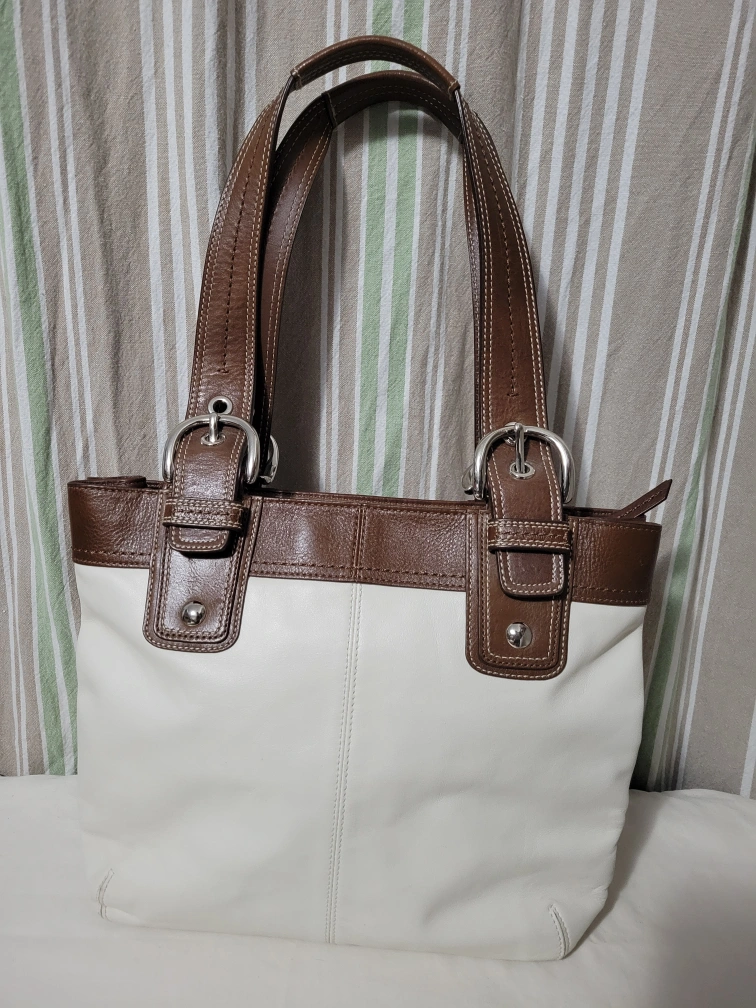 Color: Off White, Brown with Silver Hardware