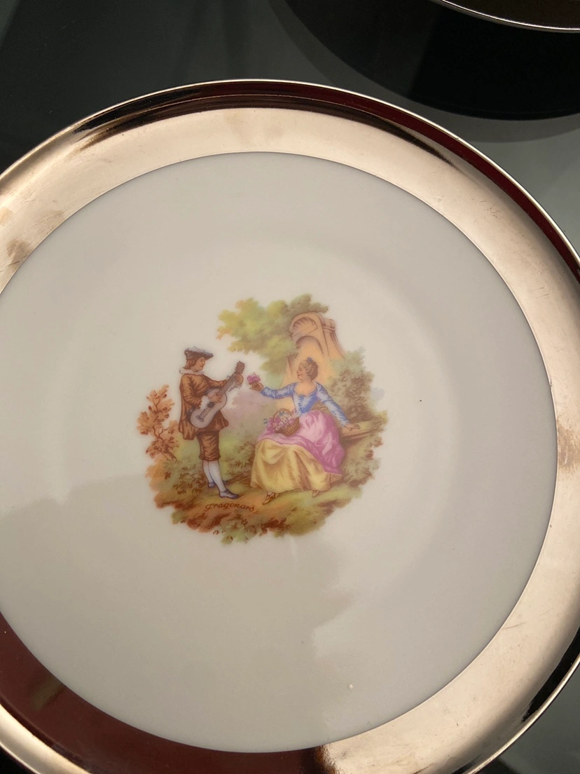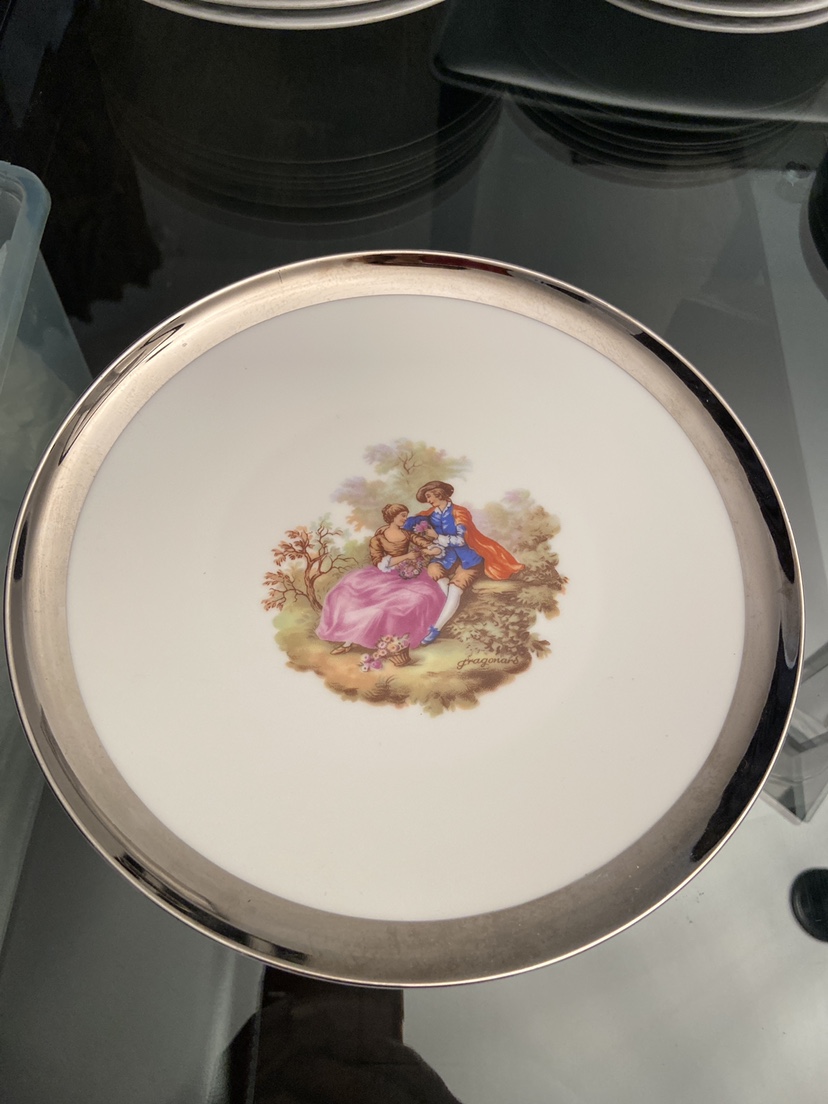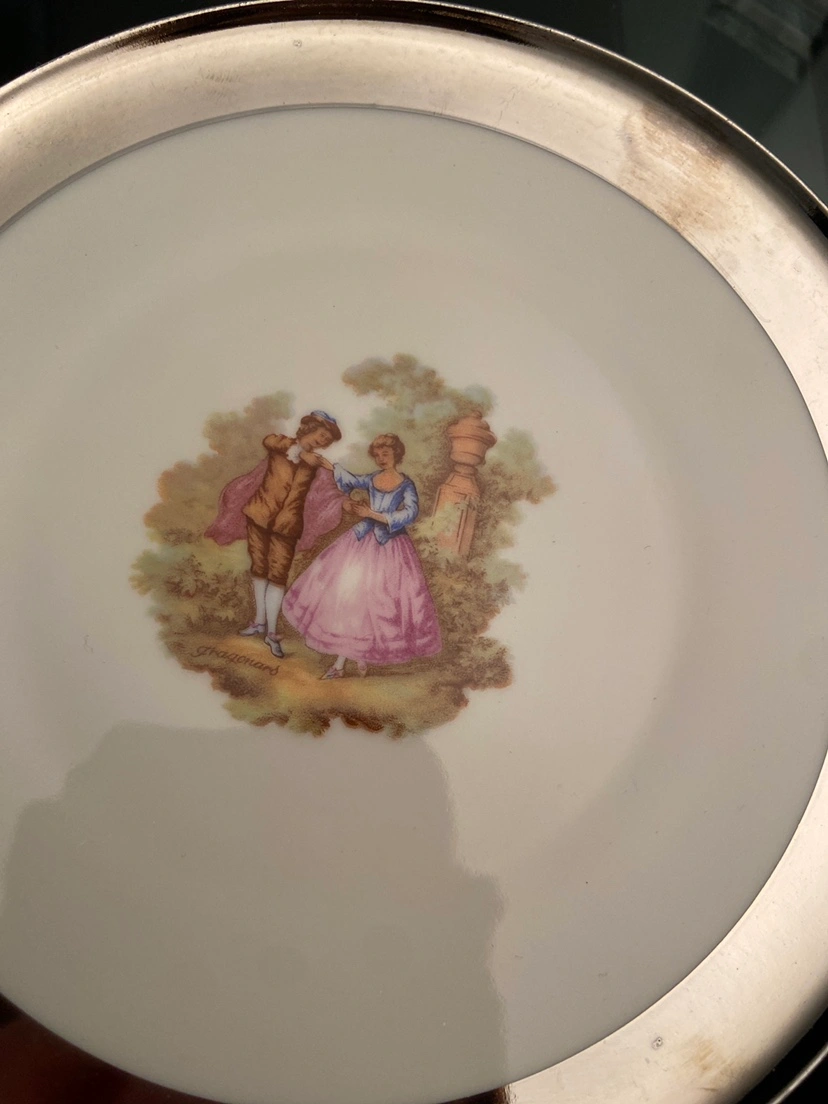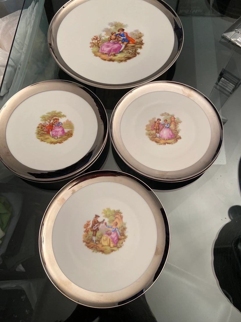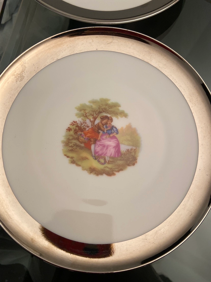 These are beautiful vintage Bavaria plates with a silver rim and a painted design.