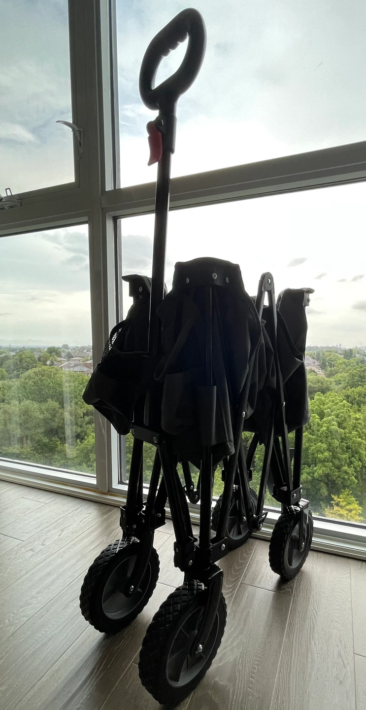 TIMBER RIDGE Collapsible Outdoor Folding Wagon Cart Heavy Duty Camping Patio Shopping Garden Cart with Side Bag and Cup Holder