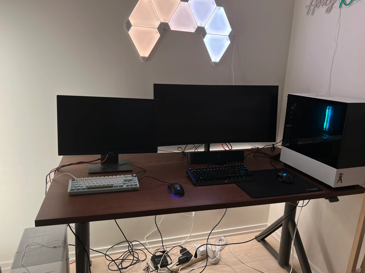 This desk is in great condition and includes the adjustable height feature, cable management net, and a large surface area for work or gaming. The standing feature still works well and the desk has been well-maintained. It is available for local pickup. Can be disassembled to fit range of vehicles.