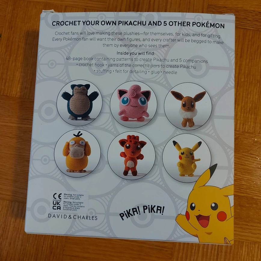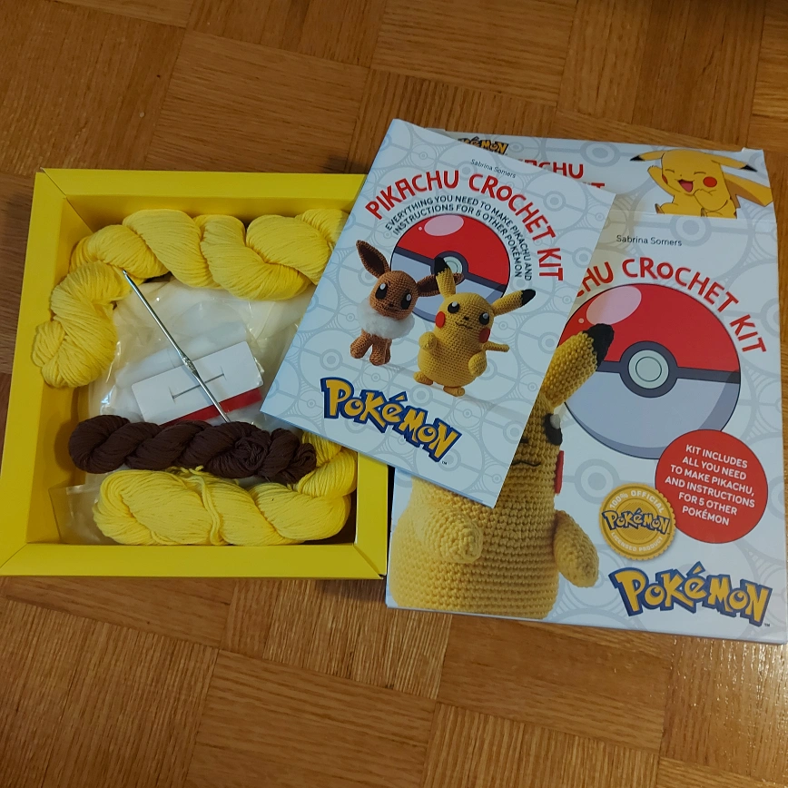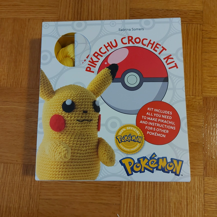 I bought this to do myself but then never did. Opened but like new condition. Crochet kit for making Pikachu and instructions for 5 other Pokémon. 48 page book with instructions. Includes yarn, crochet hook, needle, stuffing, and glue. Exact amount in cash please. pick up at Pape Station.