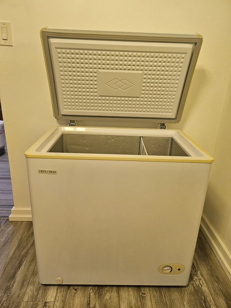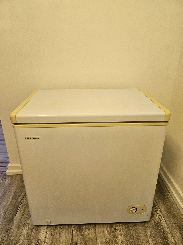 This durable Danby (Diplomat) compact chest freezer is ideal for apartments or condos