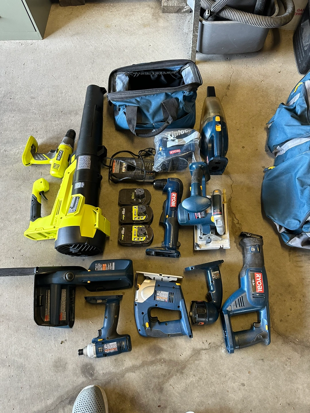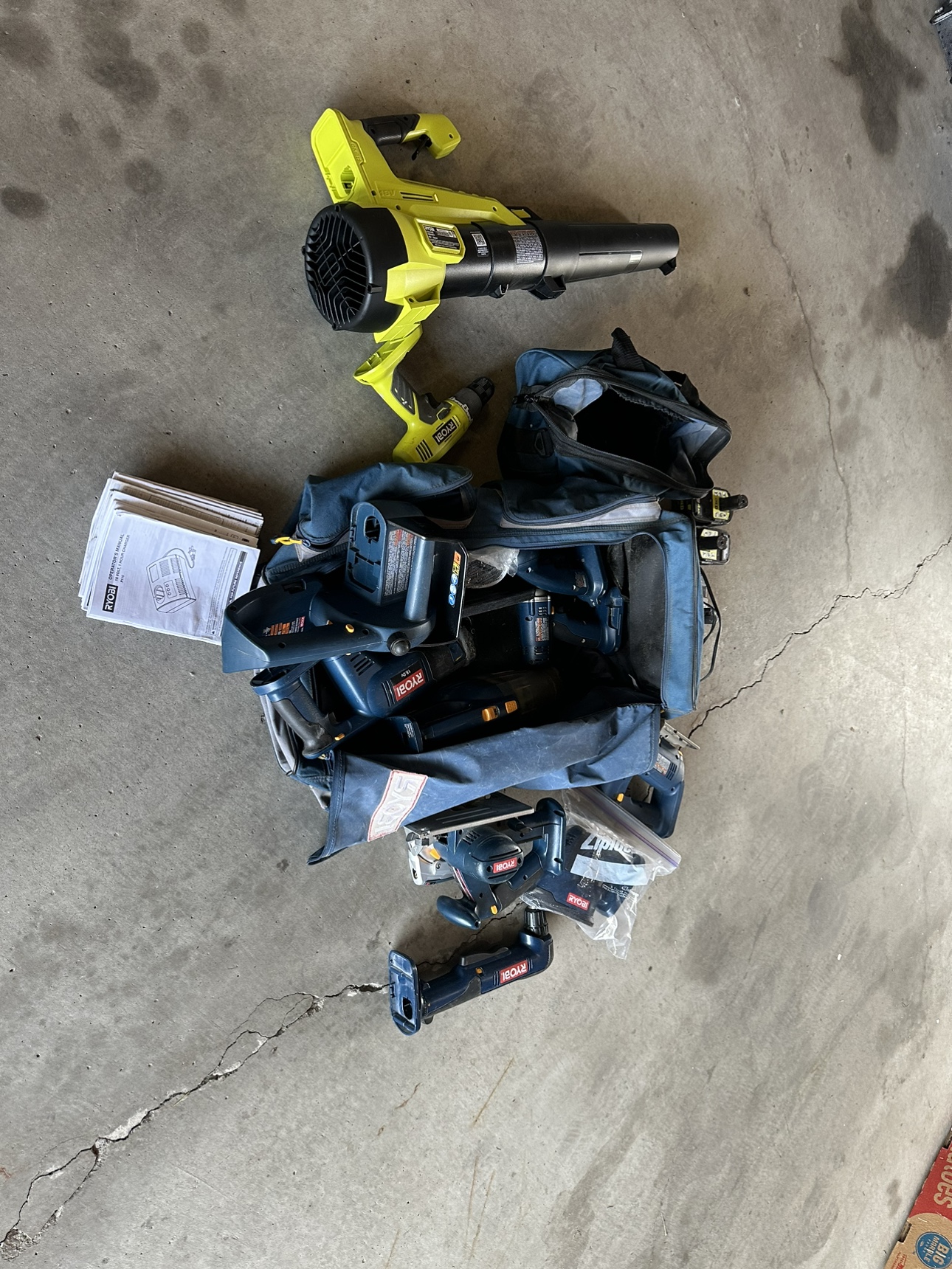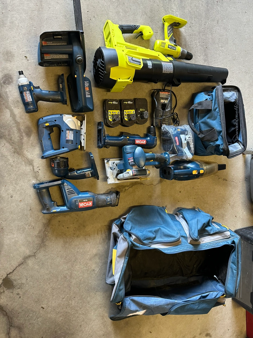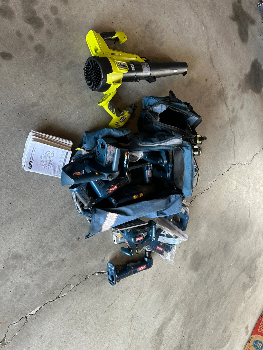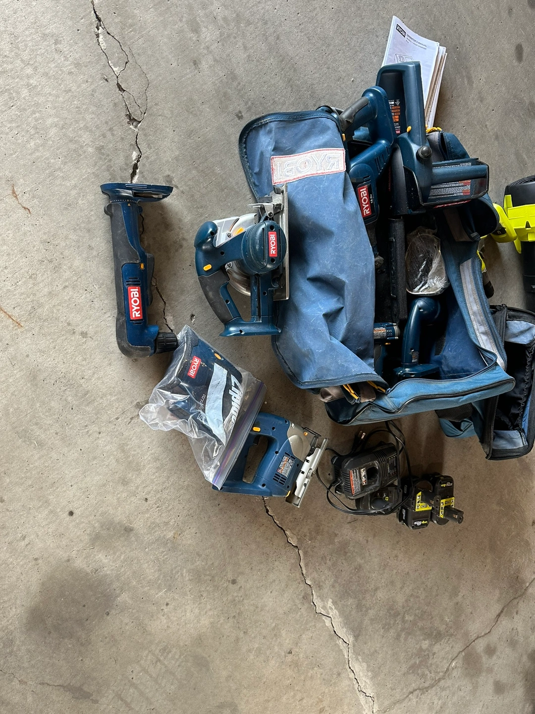 11 pieces of good working condition plus one new leaf blower, come with battery and charger , 3 batteries, sell the whole lots don’t use very much any mores time to go!!!
