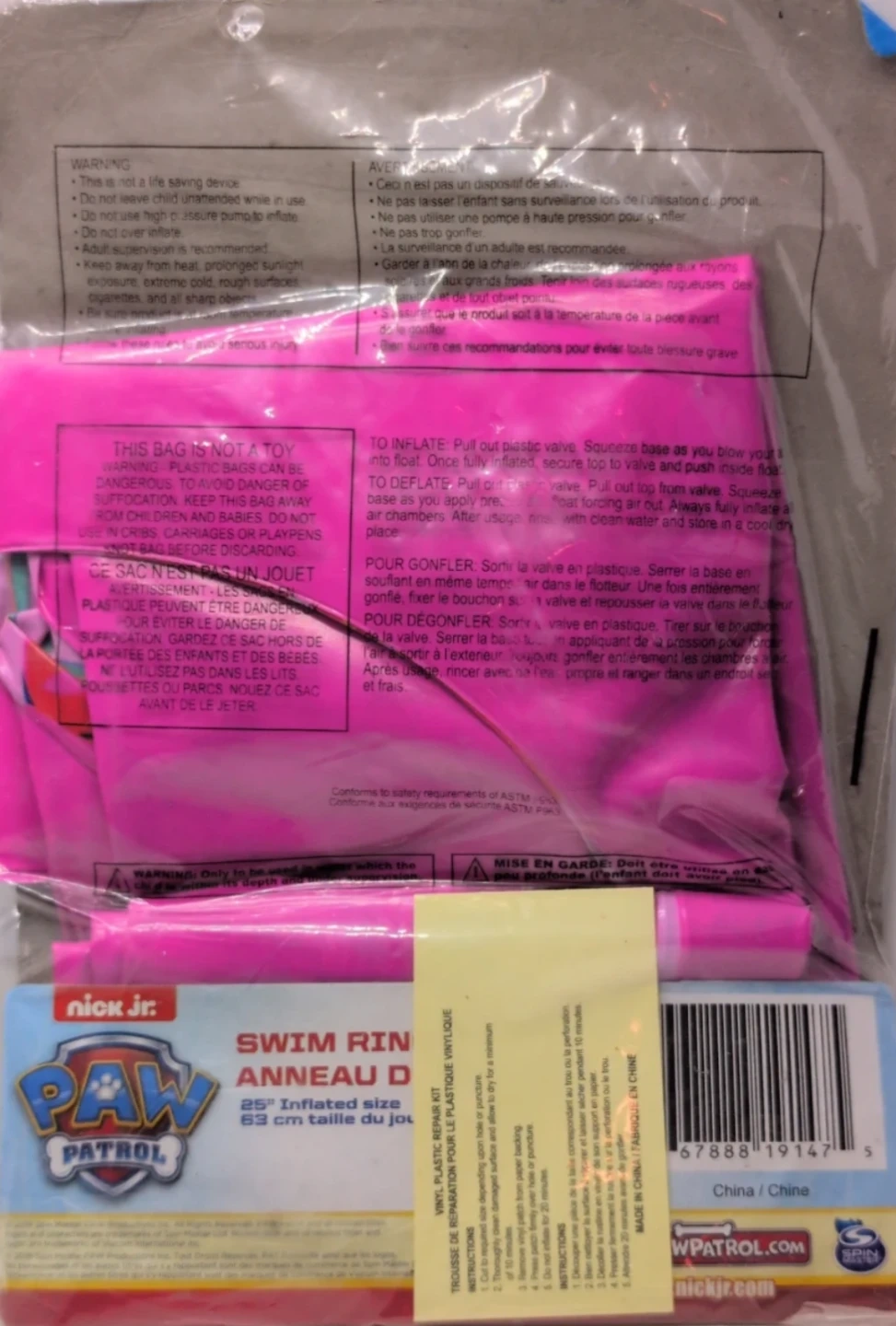 This Paw Patrol swim ring features Skye and Everest! It's 25 inches inflated. Suitable for water fun!