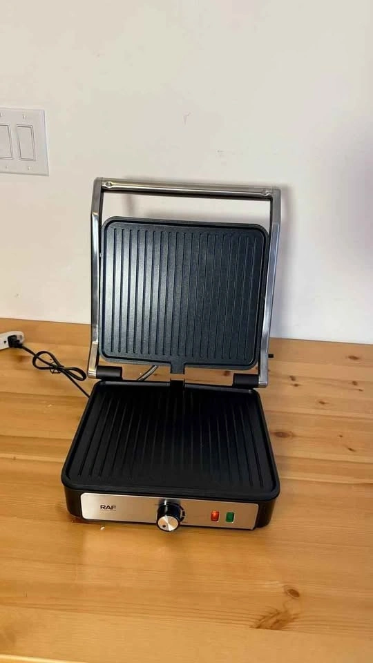 Brand new. 1200W power for fast and even cooking. Non-stick removable plates for easy cleaning. Opens 180 degrees for versatile grilling. Adjustable temperature control for perfect results. Ideal for sandwiches, paninis, and grilling at home. Pickup in North York.