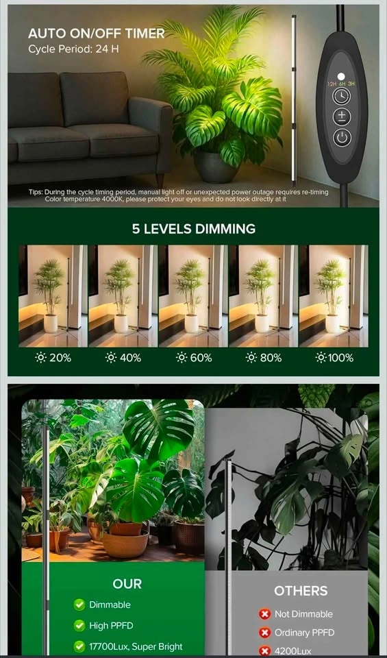 Brand new SANSI T10 standing grow light for indoor plants. Features full spectrum LED, adjustable height up to 4.34FT, 5 dimming levels, 4000K, and a timer (3/6/12h) for wide coverage growth. Asking $70. Still in box.