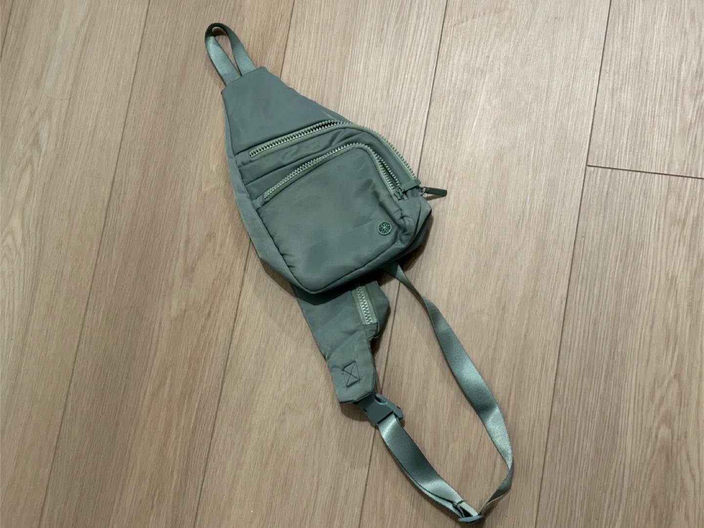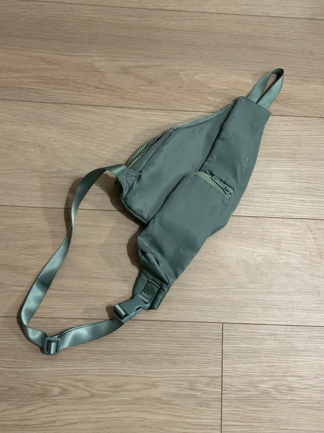 Sage green nylon shoulder bag with phone pocket, small inner pocket & two larger compartments, barely used & perfect for a hike, festival, power walk & more!