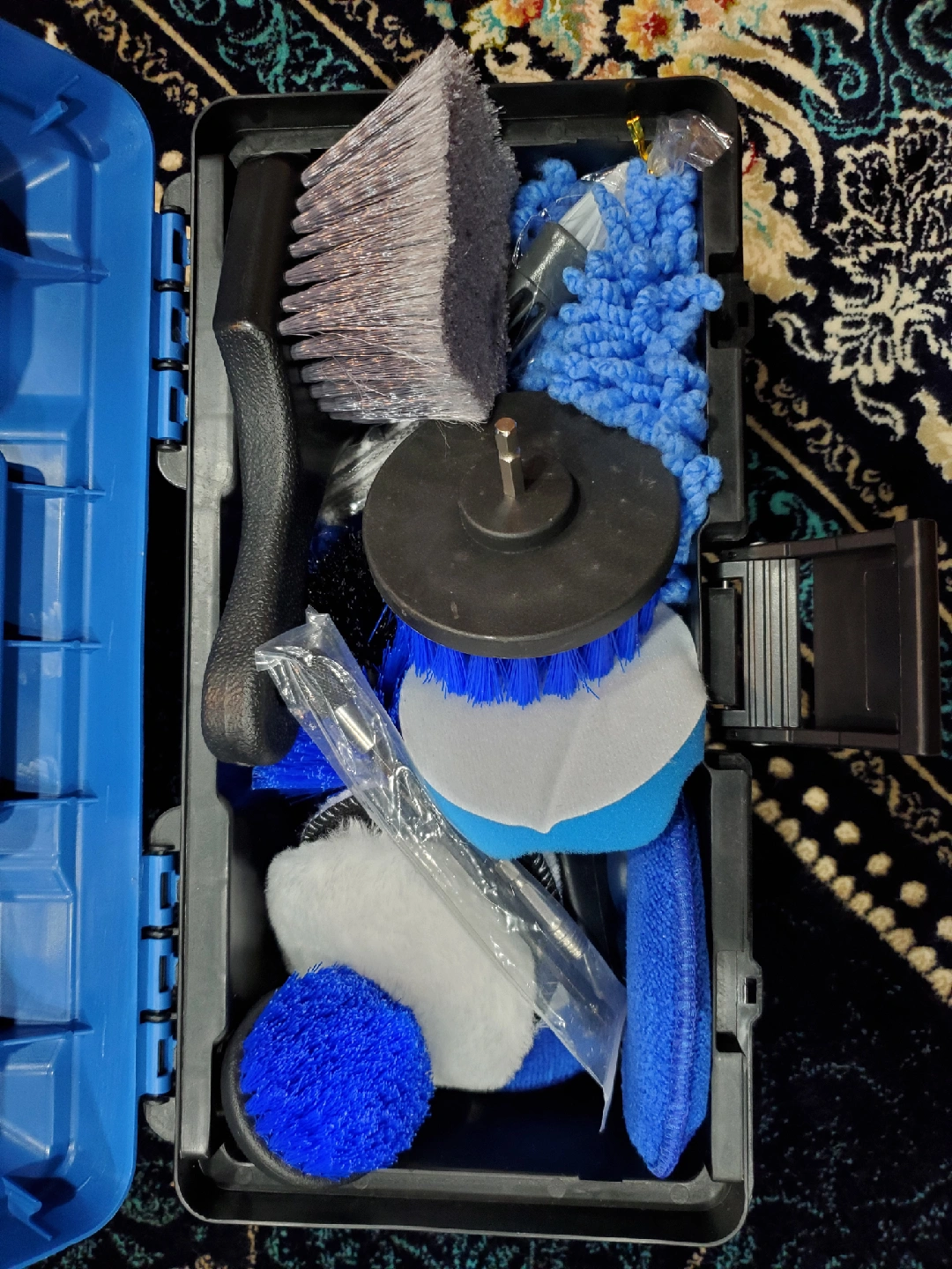 105Selling a brand new 27-piece car detailing brush kit! It comes in a handy tool box, perfect for keeping everything organized. The kit includes various brushes and accessories for car cleaning, detailing, and washing. Great for both interior and exterior use!
