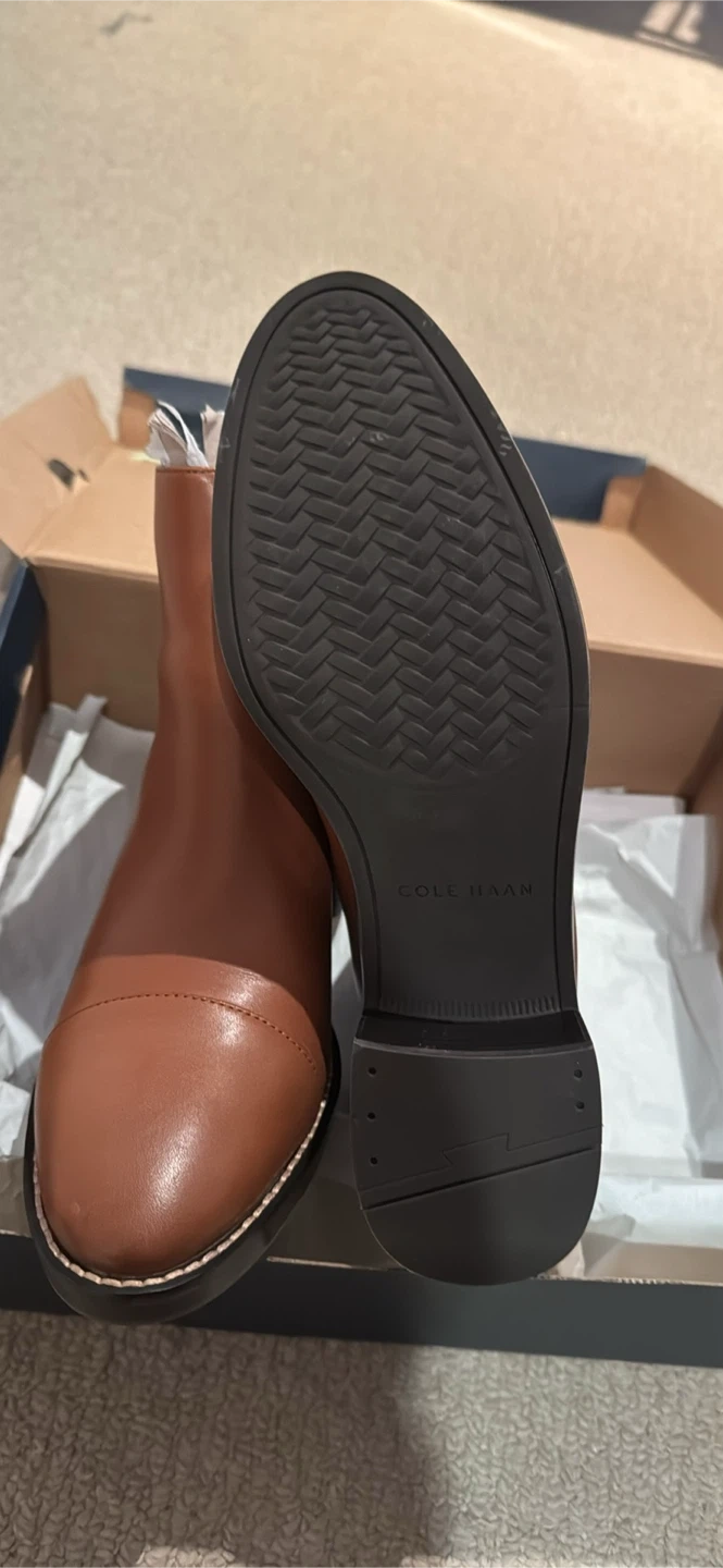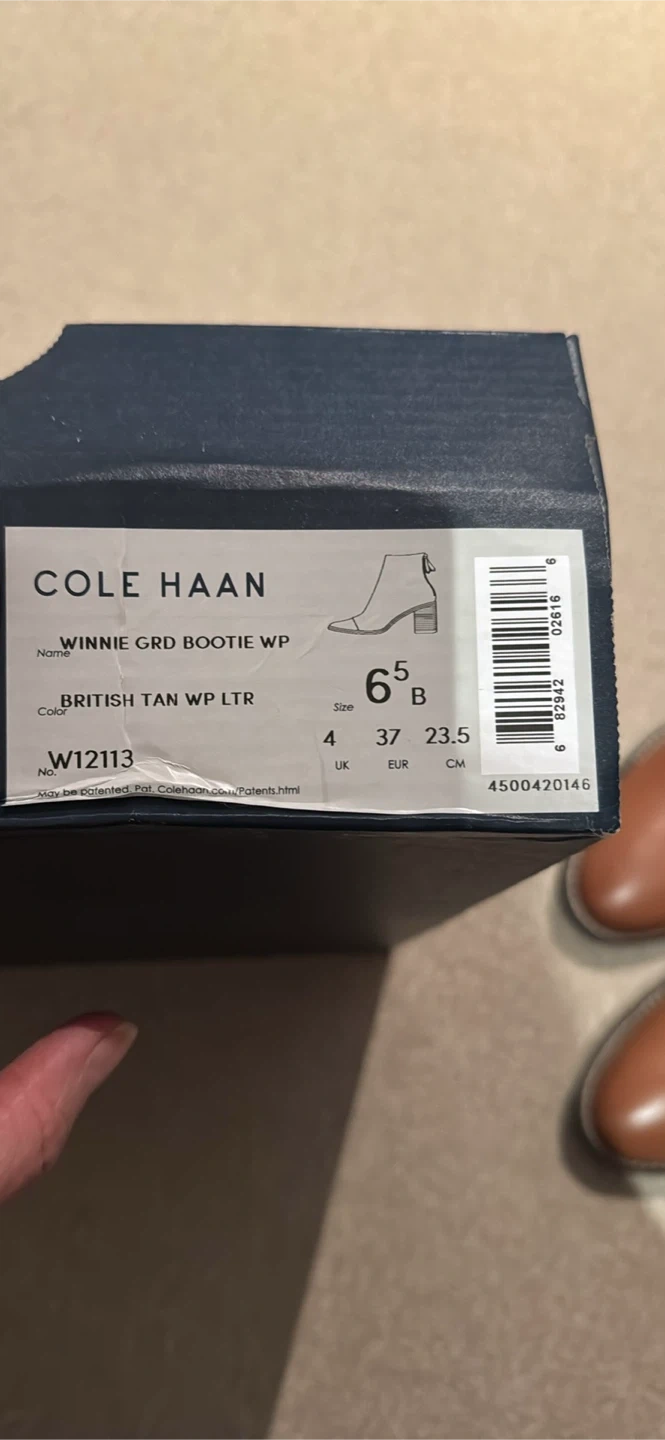 Brand new Cole Haan Winnie boots in British Tan. They're waterproof leather with a back zipper. Includes original box. Size 7