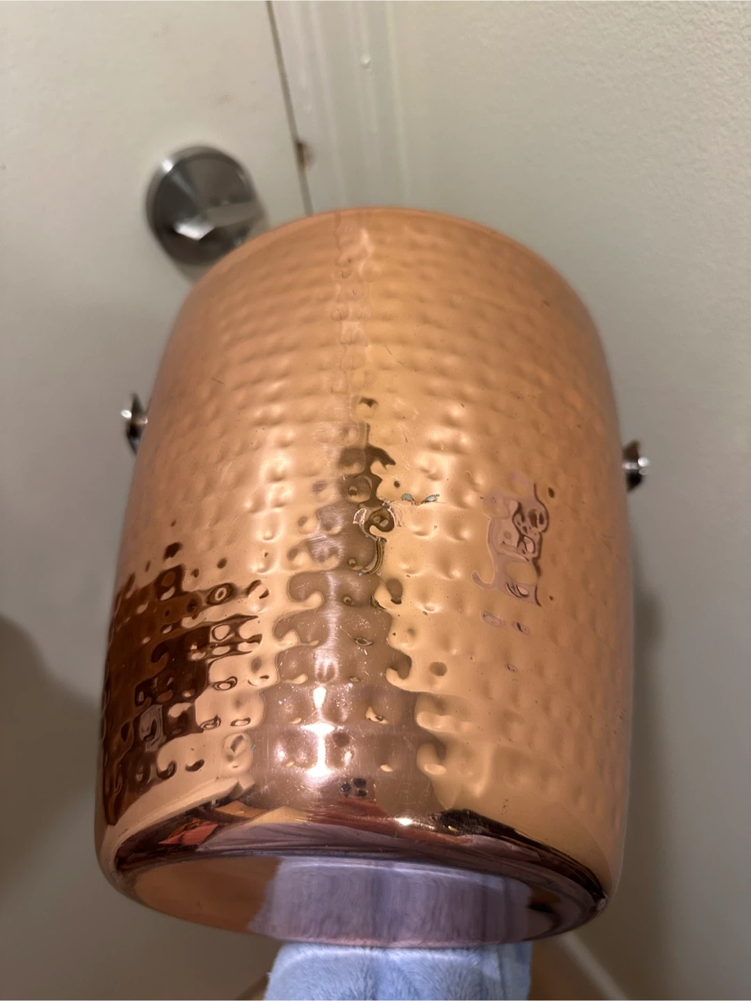 This ice bucket is made with a hammered copper finish and a stainless steel interior