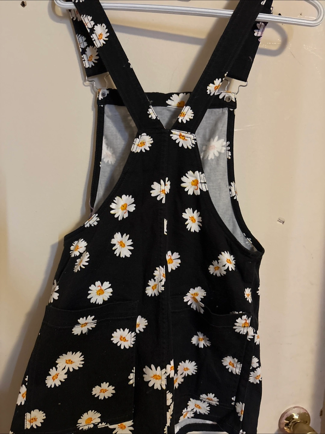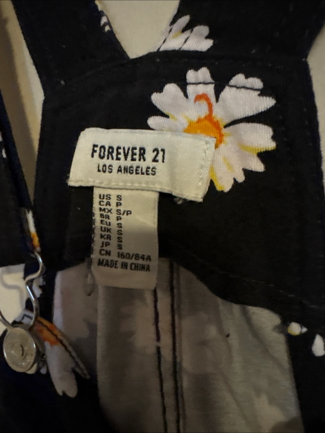 Cute Forever 21 overalls with a daisy pattern! They're a size small and in great condition. Perfect for a casual, fun look! It has two front and back pockets!