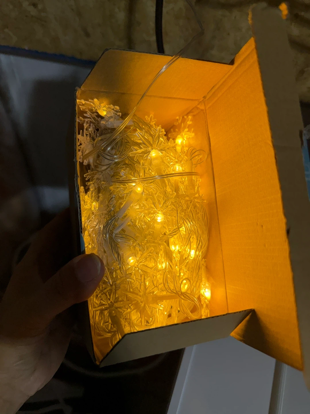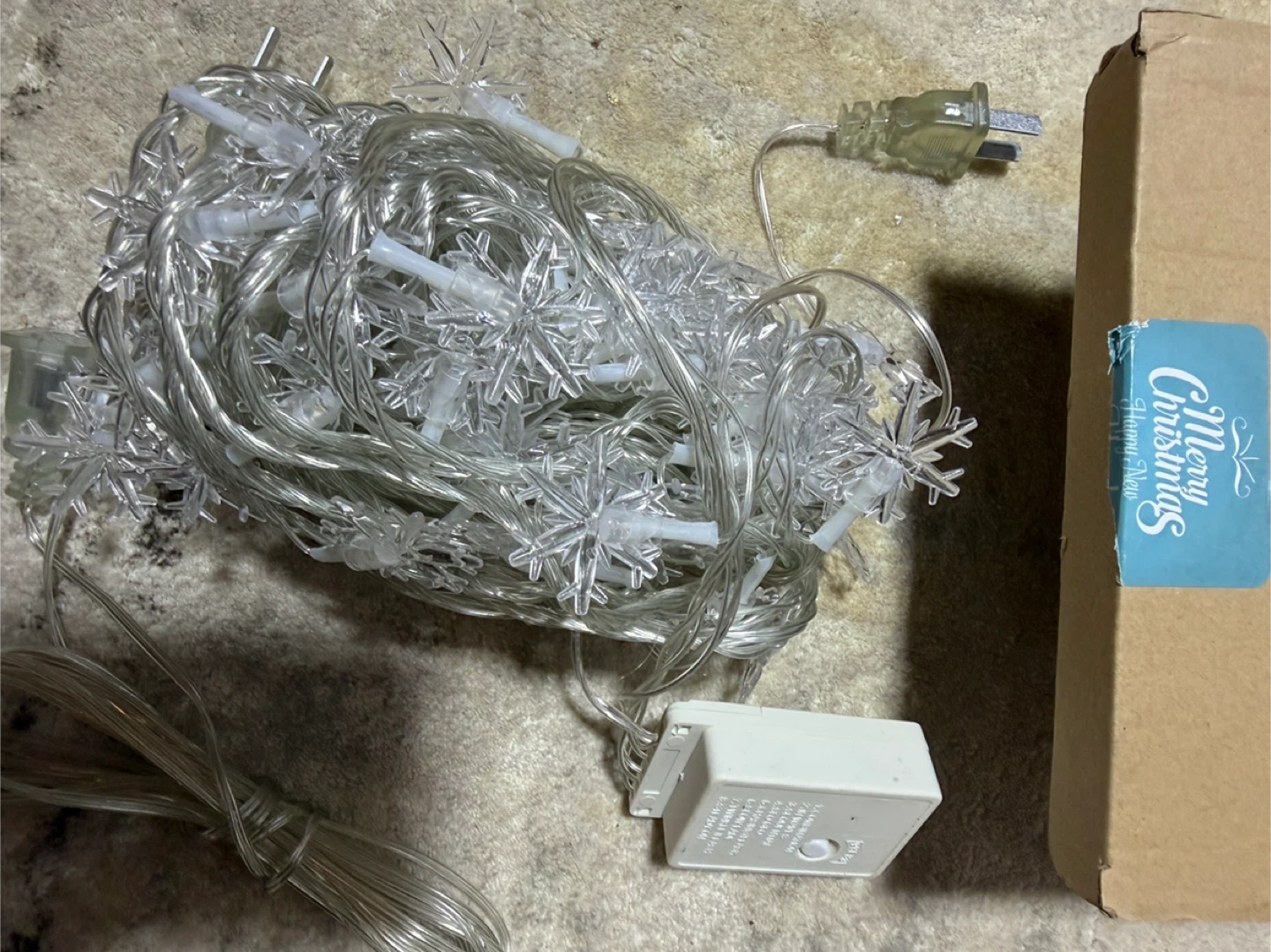 Selling a set of snowflake string lights! These lights are perfect for adding a touch of winter magic to any room. They come with their original box, making them easy to store and keep organized. They're in great condition and ready to brighten up your space!