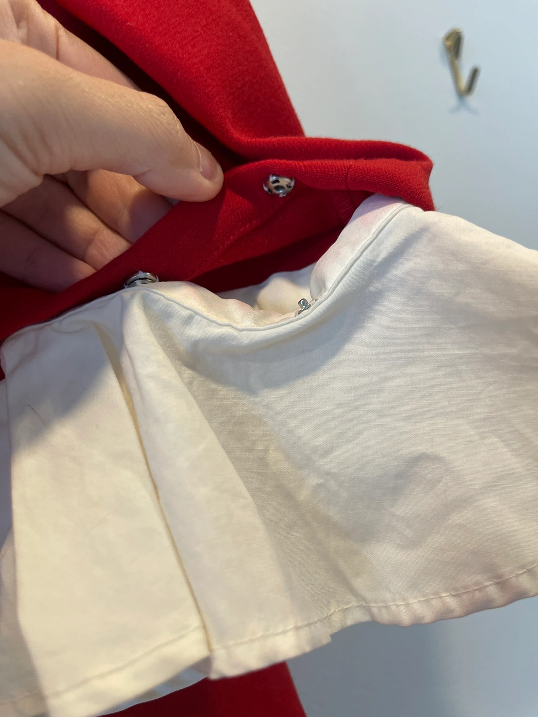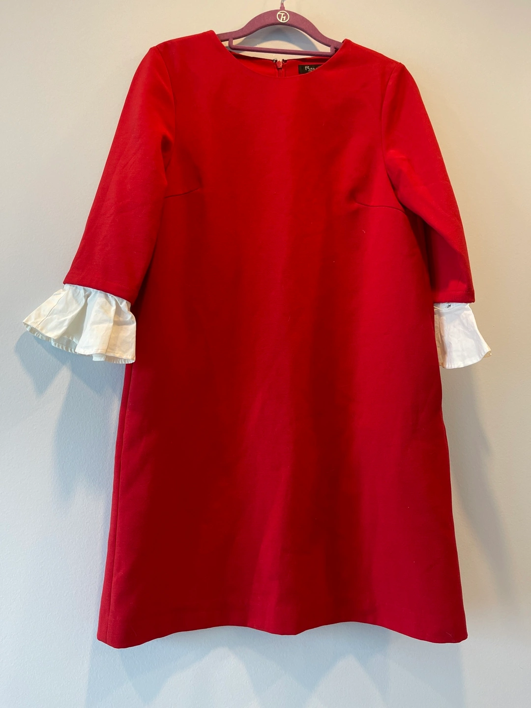 1000+A red dress with white ruffled sleeves. The sleeves are attachable, you can wear it without sleeves. A decent dress for party or special event. Comfy fabric
