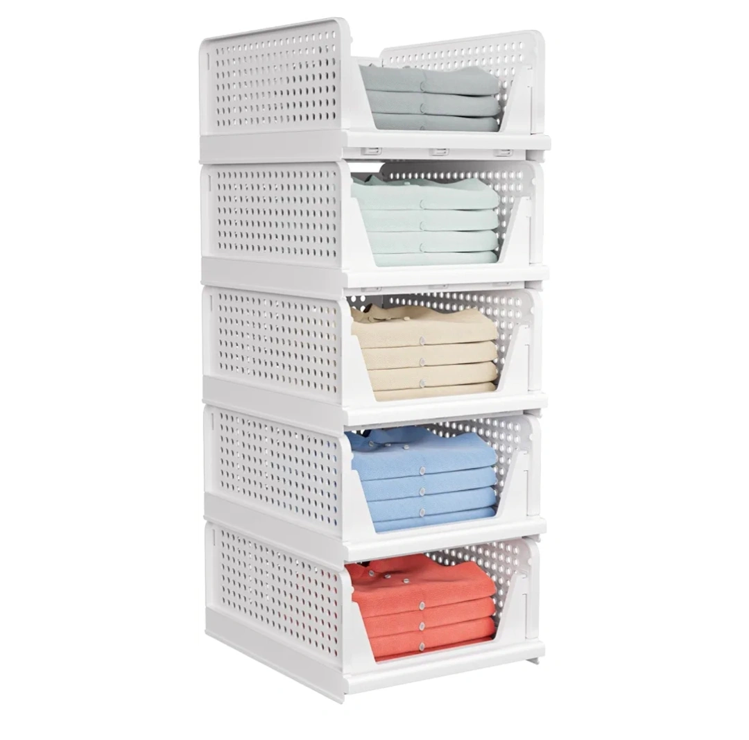 caktraie 5 Pack Folding Closet Organizers Storage Box, Stackable Plastic Storage Basket, Closet Organizers and Storage Drawer Shelf Storage, Storage Container for Cupboard Kitchen Bathroom