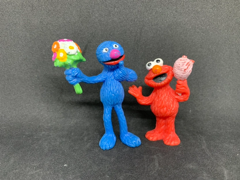 Vintage Lot of 6 Muppet Figures featuring characters like Miss Piggy and Elmo from the popular TV show The Muppet Babies. This set of 3 figures is from 1986 and is made of PVC material. Created by Jim Henson, these action figures stand at 2" tall and are part of the Muppet babies series by McDonald's. A perfect addition to any fan's collection of retro toys from the 1980s.