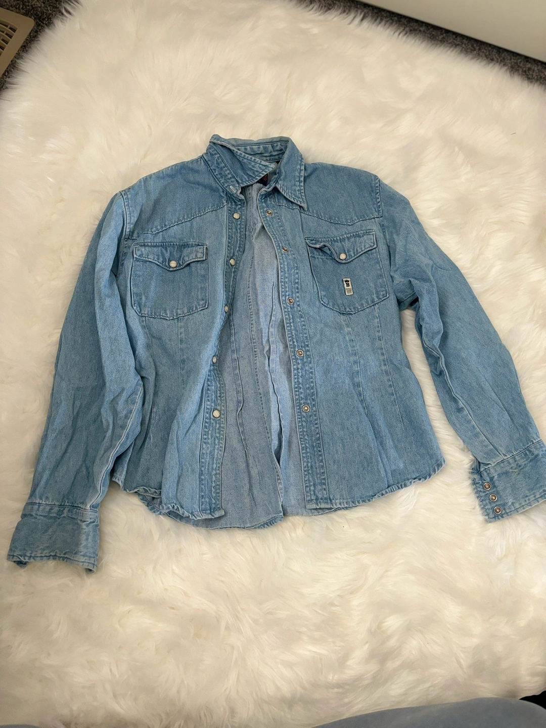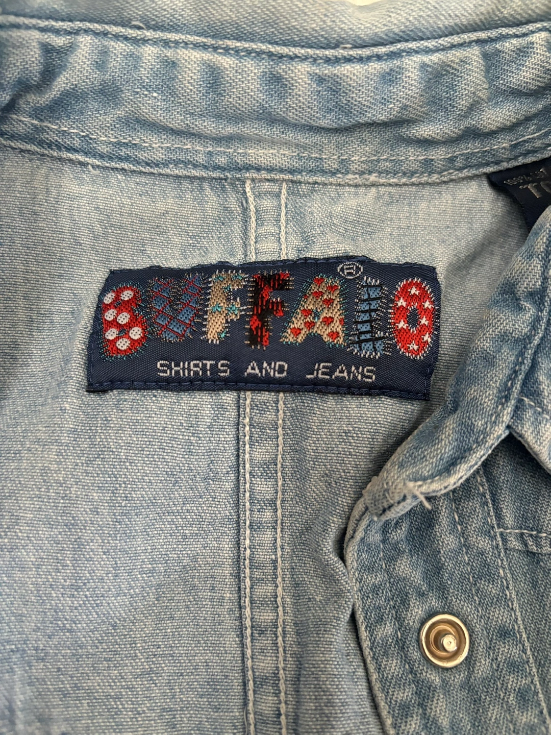Light blue Buffalo Denim Pearl Snap XL Fits Smaller 100% Cotton Gently Used Hung Dry Pet & Smoke Free Home