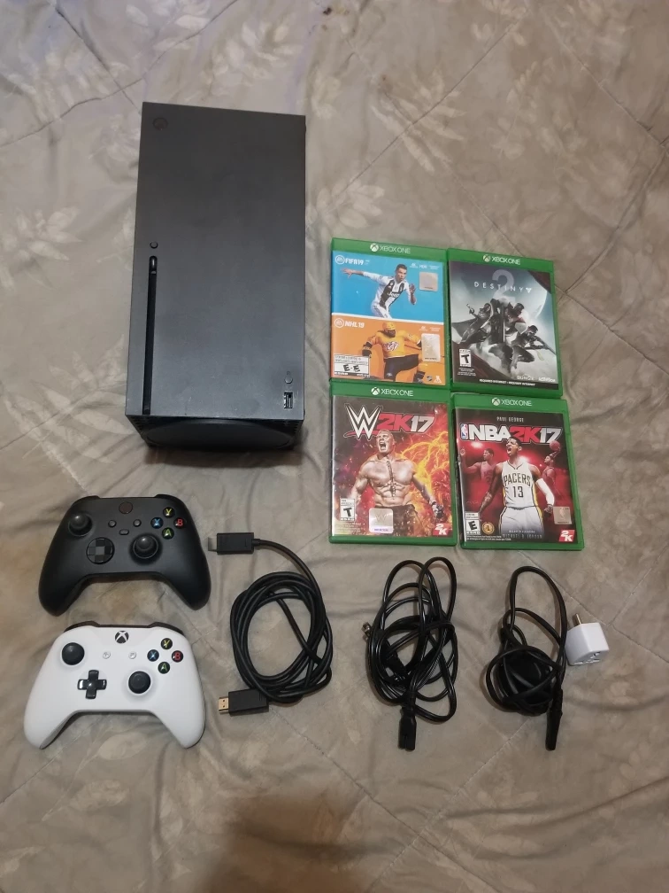 813Basically New Condition Xbox Series X 1TB Bundle + 2 Controllers and 4 Games (10/10 Condition and Clean) Everything Included: - Xbox Series X 1TB Console (10/10) - 1 Black Xbox Series X/S Controller - 1 White Xbox one Controller - 2 Power Cords (One Brand New to Test and Another) and HDMI Cable - 5 Games • WWE 2K17 • NBA 2K17 • Destiny 2 • Fifa 19 • NHL 19 Everything Works Perfectly Fine and Has Been Tested and Factory Reset for a New Buyer 🙏🖤 (PS: Please Only Message If Interested in the Item and Ready to Buy Please Don't Waste Either one of our times Thanks All the Best 😊🙏💚) Meetup/Dropoff for a Fee Depending on the Area/Location ($5-$20) Pickup Address 230 Woolner Ave York,ON