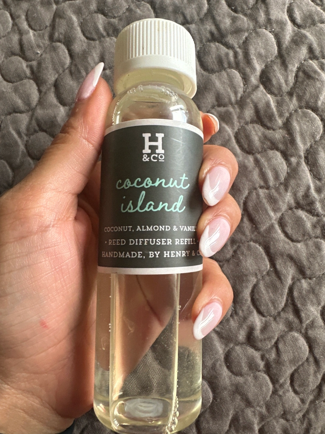 A reed diffuser refill in the scent of Coconut Island by Henry & Co. Brought it from England . It’s originally £22