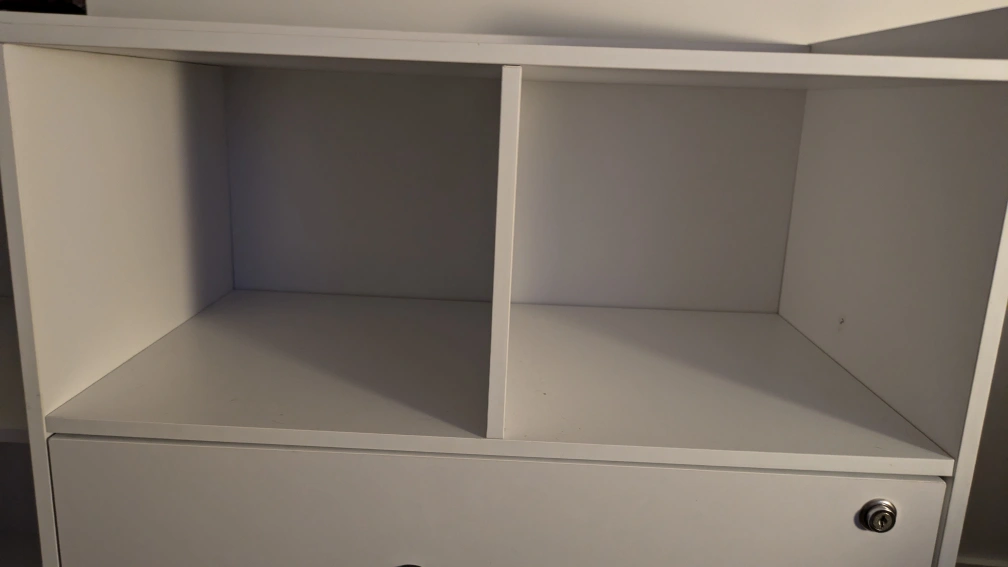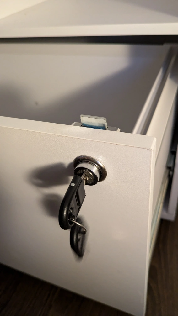 White Rolling Cabinet with Lockable Drawer and Outlets