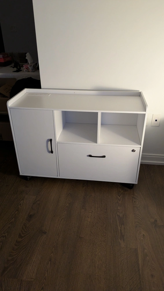 Rolanstar File Cabinet with Charging Station, Mobile Lateral Filing Cabinet with Locking Drawer, Printer Stand with Open Storage Shelf with Wheels, for Letter/Legal/A4 Size Files, White https://a.co/d/5s59IRk