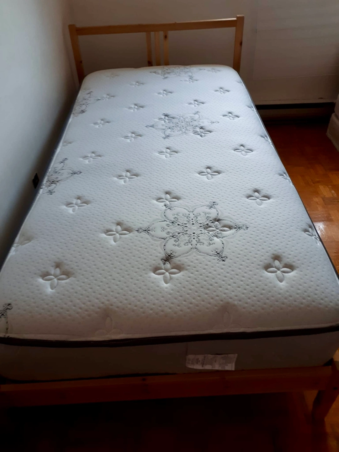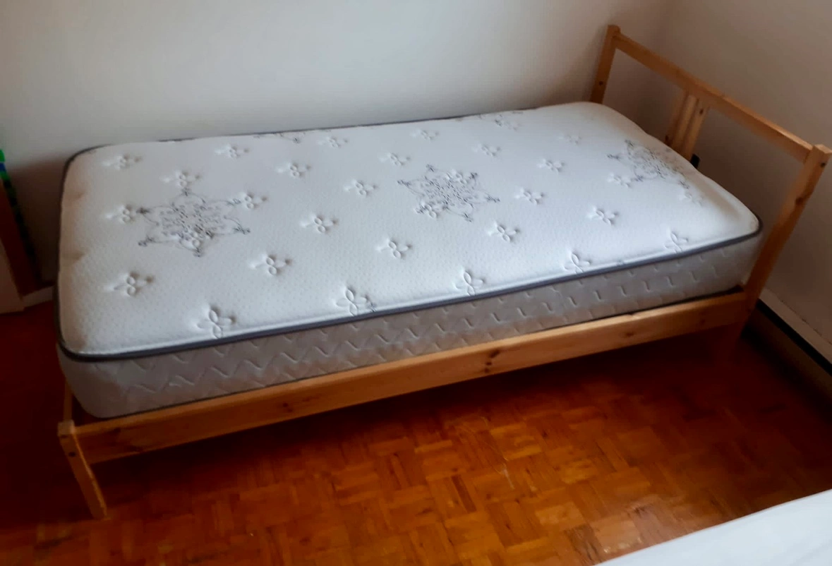 Including a thick and double-layered twin mattress. Gently used for less than a year.