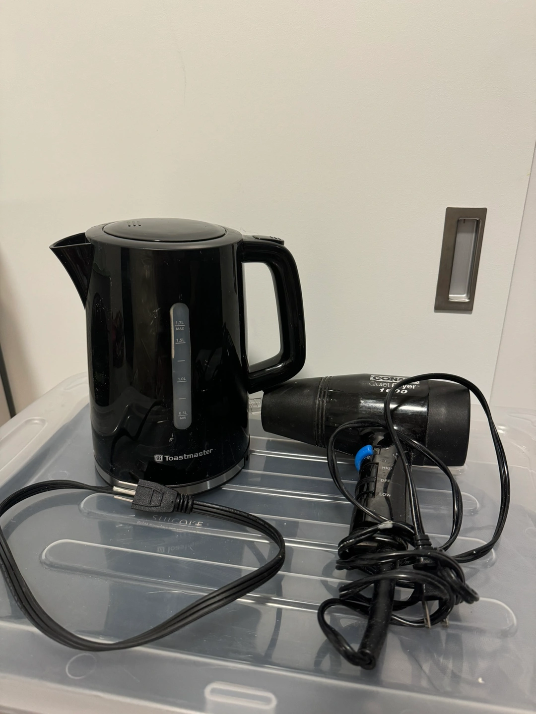 Black Toastmaster electric kettle good condition and Conair hair dryer, hair dryer is used but does the job