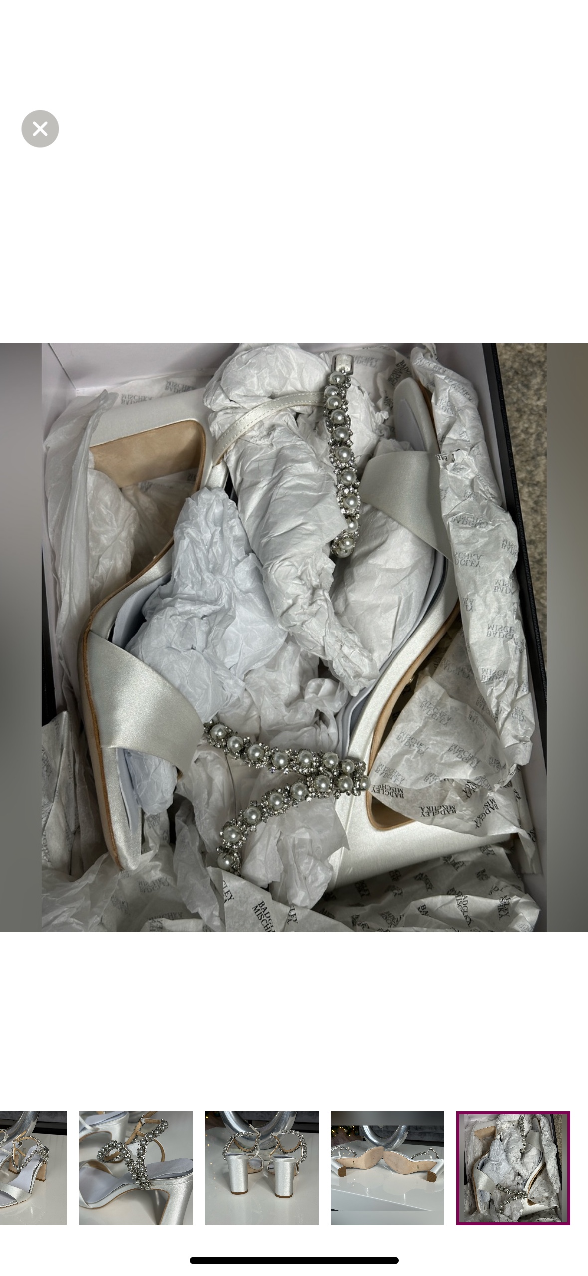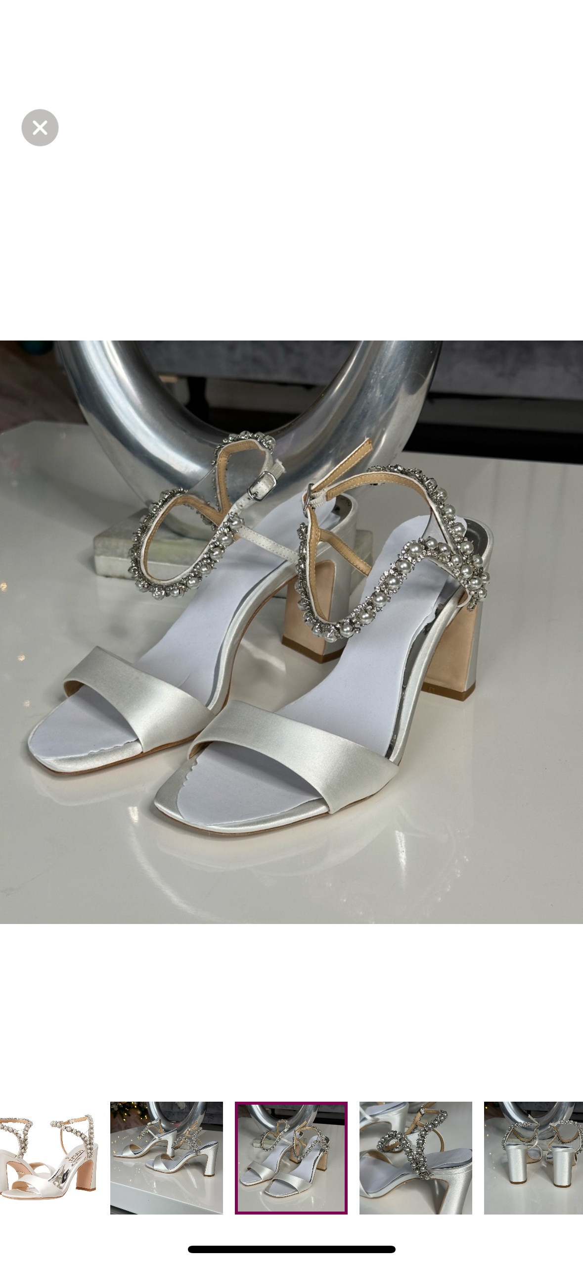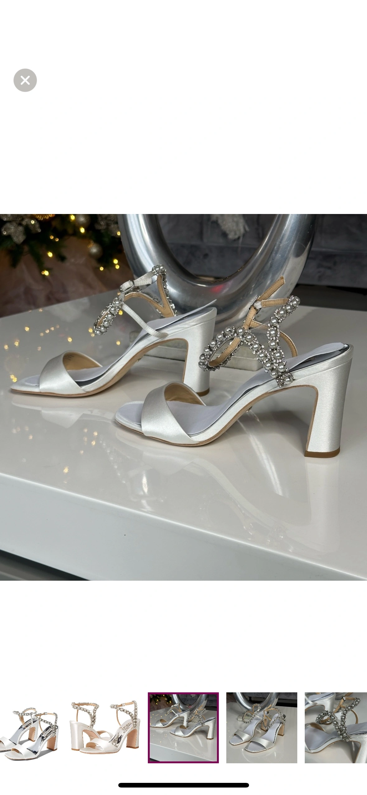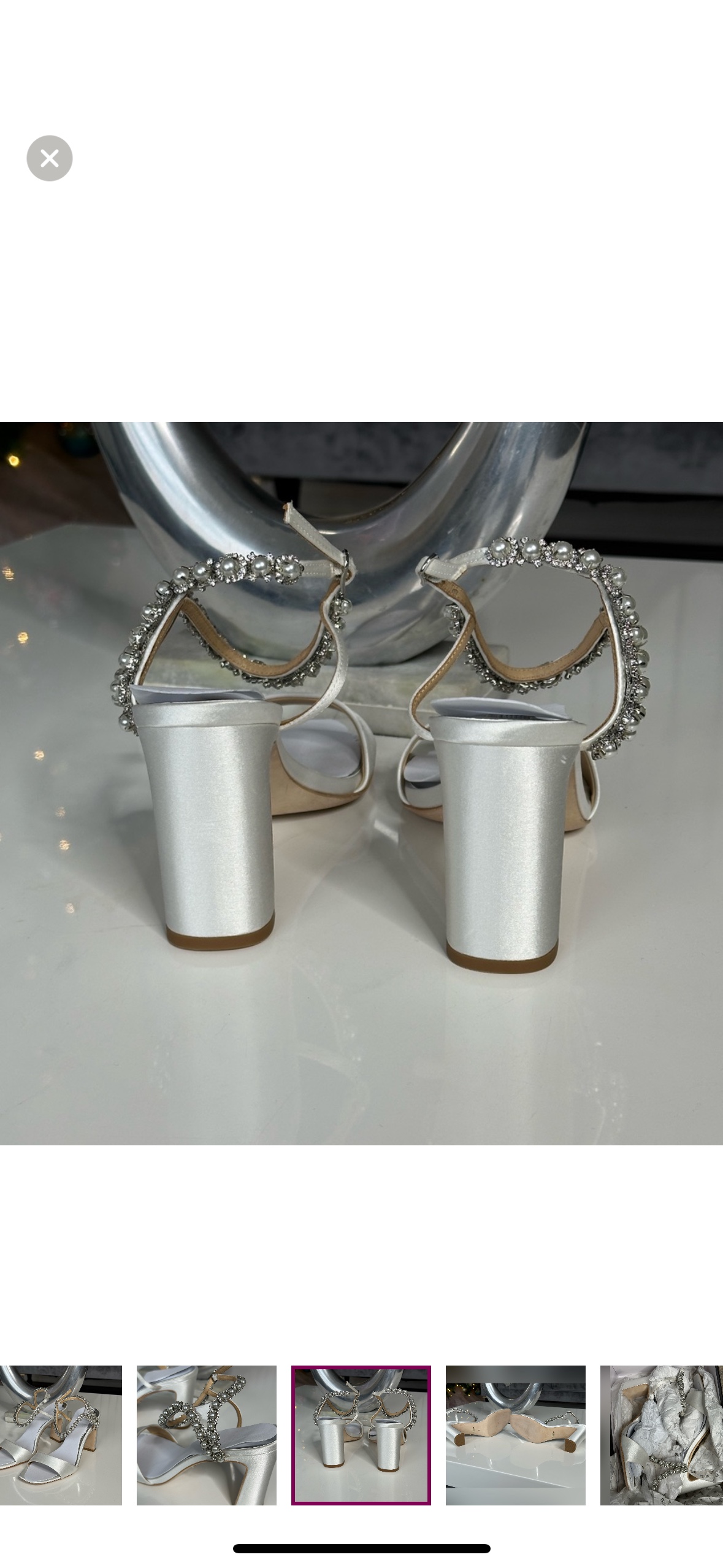These are beautiful white satin block heeled sandals with a pearl and rhinestone embellishment. - Auth first and foremost ๐Ÿ‘๐Ÿพ - Satin white, with silver accent gems & pearls! They are a little big for me! So sad, because they are stunning ๐Ÿคฉ๐Ÿ˜ - beautiful satin white, with clear gems on the strap - fit a size 8 US - I was planning on wearing them for a wedding, they are dressy and classy! - GREAT PRICE, YOU ARE getting a very good deal ๐Ÿ˜„ - Pls no offers (UNLESS the offer amount is close) Already discounted very heavily :)