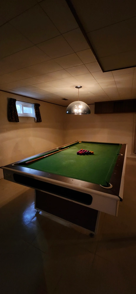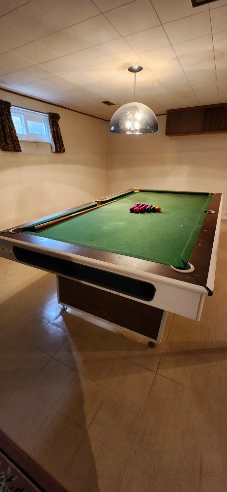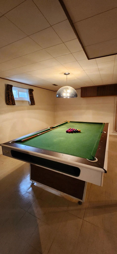 A vintage pool table. The table is worth the price and includes 3 to 4 cue sticks. Pick up only. Buyer must arrange their own transportation. Can help them in dismantling and loading onto to their vehicle.