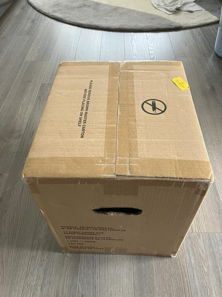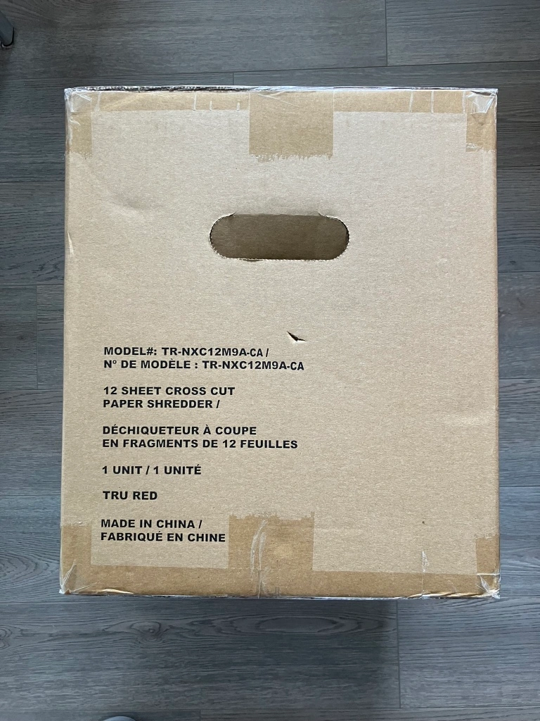 TRU RED Mailmate is the perfect solution for today's home or small office shredding needs. The compact size allows placement on counters, desktops, or under tables or worksurfaces. The 1.4 gallon waste bin has an easy to view side window, letting you see when to empty at a glance. OTR MAILMATE M7 12 sheet cross cut paper shredder Brand new in it’s original packaging Model # TRUNXC12M9A Original value:$169+ Electric paper shredder in good working order.