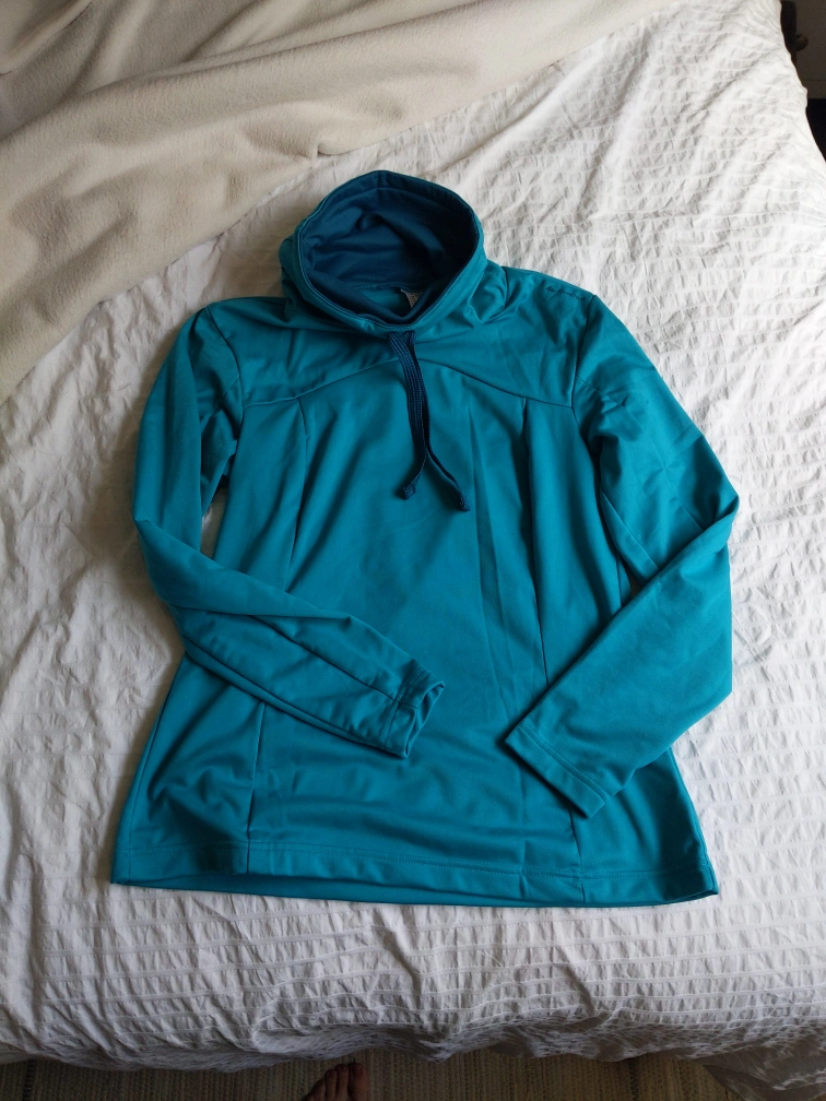 Teal long sleeve warm sweater with a high neck and a drawstring. listed as size large but this was a gift and I am a women's small and it fits just a little large on me. fits like a small-medium. great layering price for colder months or for running outside. pickup downtown by OCAD discounts given for bundles! tags exercise running outdoors exercise sports layer women teen girl teal blue comfy warm mock neck drawstring new