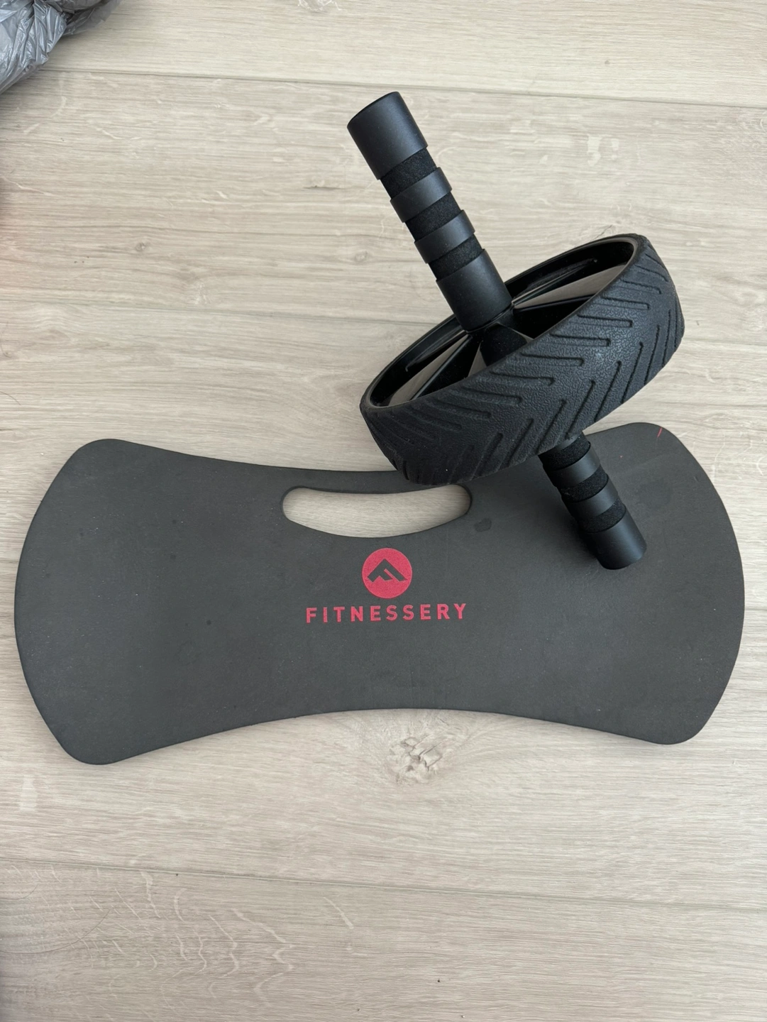 An ab wheel with a knee pad from Fitnessery. We just do crunches at home and are moving out so we don’t need it anymore. Thank you in advance!