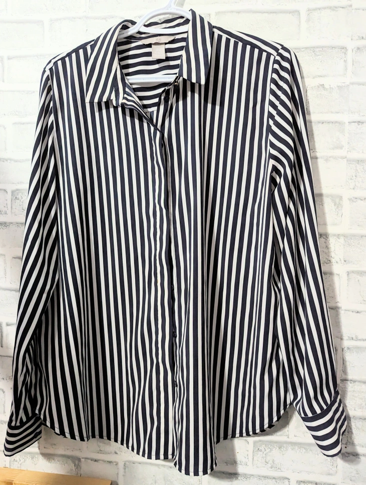 238Size 10, long sleeve button up shirt with a classic collar. Fits Medium Like New