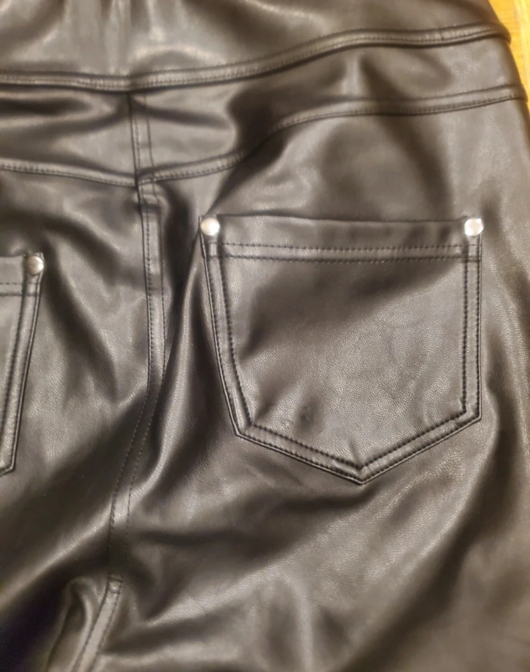These black faux leather pants from Laundry by Shelli Segal are a stylish addition to any wardrobe. They feature a classic five-pocket design and a comfortable pull-on style. They're made from a stretchy faux leather material for a flattering fit. Meetup location eglinton and dufferin