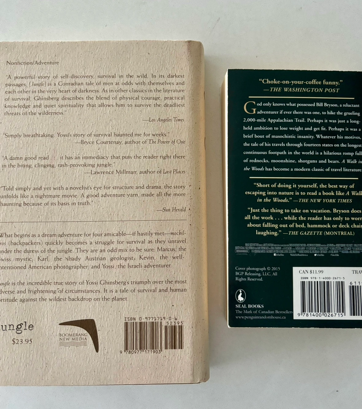 Jungle by Yossi Ghinsberg & A Walk in the Woods by Bill Bryson