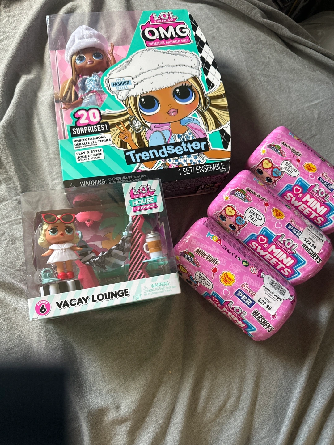 This bundle includes an OMG Trendsetter doll, a LOL Surprise House of Surprises set, and 3 LOL Surprise Mini Sweets.
