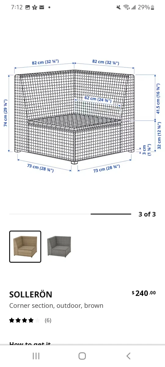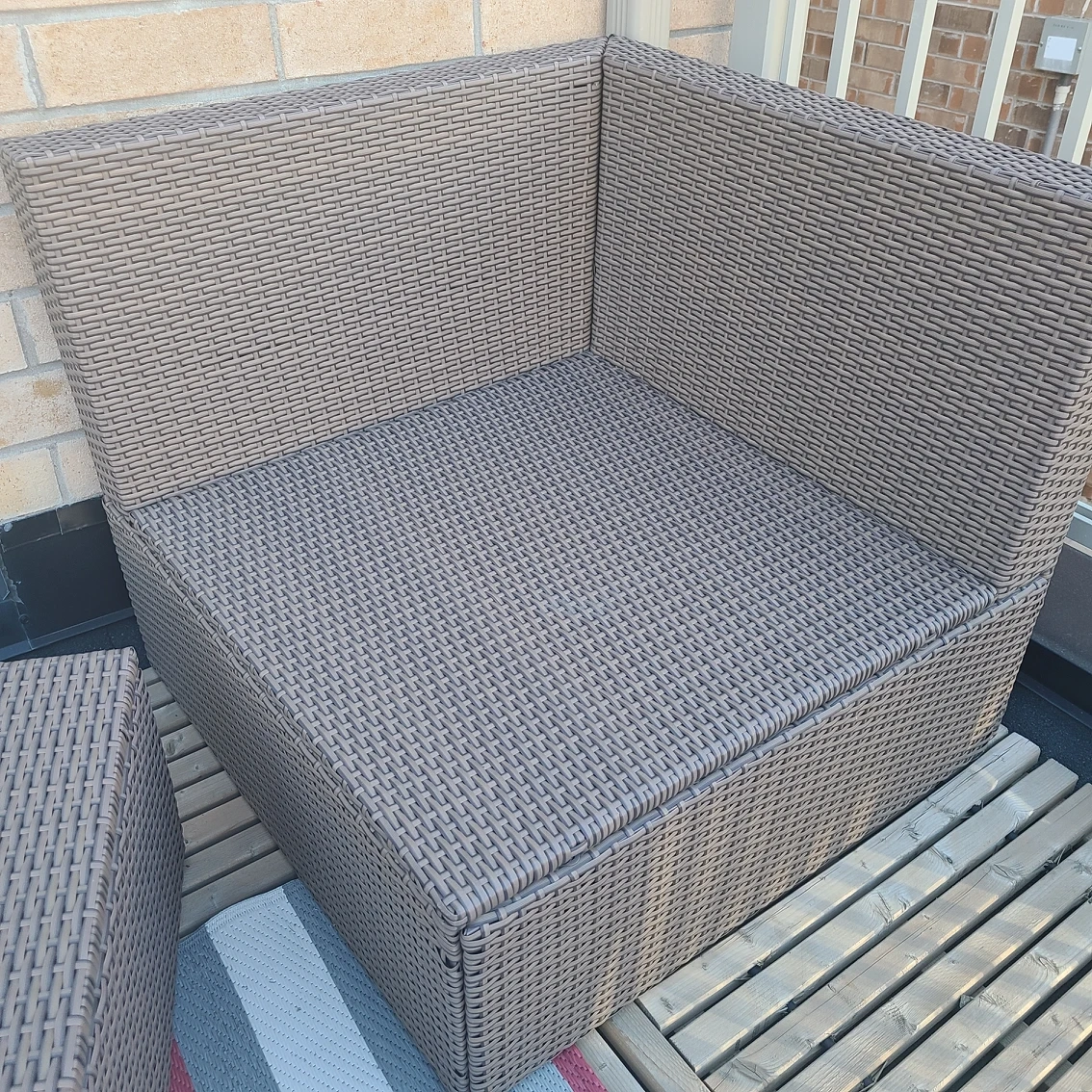 Both pieces in good condition, selling without cushions. Same Ikea item as shown in screenshots plus ottoman. Works great on small balconies as a corner piece.