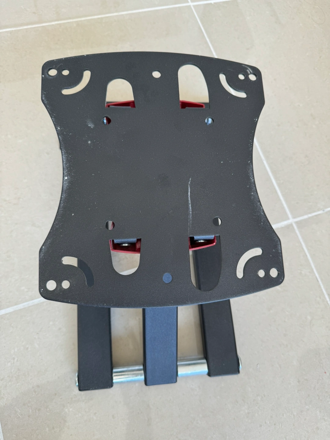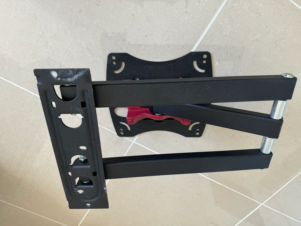 This is a tilting TV wall mount. It is made of metal and is in good condition. It comes with all the necessary hardware for installation.